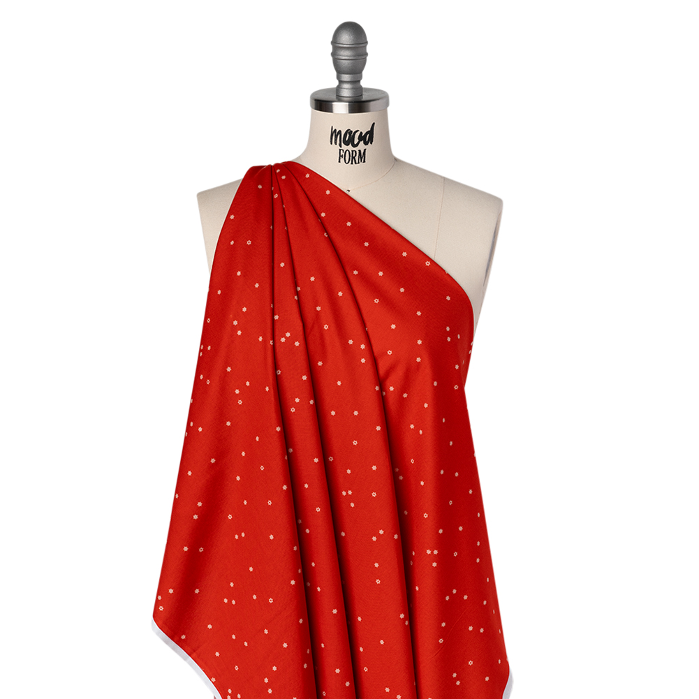 Get red-y for the jolt of inspiration that follows this Red Flowers Printed Quilting Cotton—featuring a smooth hand and supple drape.Suggested Projects: Skirts, Shirts, Quilts, Light Home DecorContent: 100% CottonStretch: NoneOpacity: Slightly TranslucentEnjoy the first notes of spring picnicking atop this red floral-printed quilting cotton—each petal the promise of warmer days to come. With a smooth hand, supple drape, and no stretch, this fabric is crafted for easy, breezy quilt work—a stable weave and incredibly smooth, lightweight finish making it perfect for anything from classic piecework and wholecloth quilting to appliqués and art quilts to English paper piecing—yet it effortlessly lends itself to lightweight home décor, craft, and fashion projects, too.Whether you’re crafting breezy shift dresses, patchwork skirts full of movement, or relaxed camp shirts and shorts, this fabric channels the essence of summer—warm breezes, sun-drenched days, and easy elegance in every stitch. With its slight translucence, a lining is recommended to enhance opacity and give your creations a polished, refined finish.
