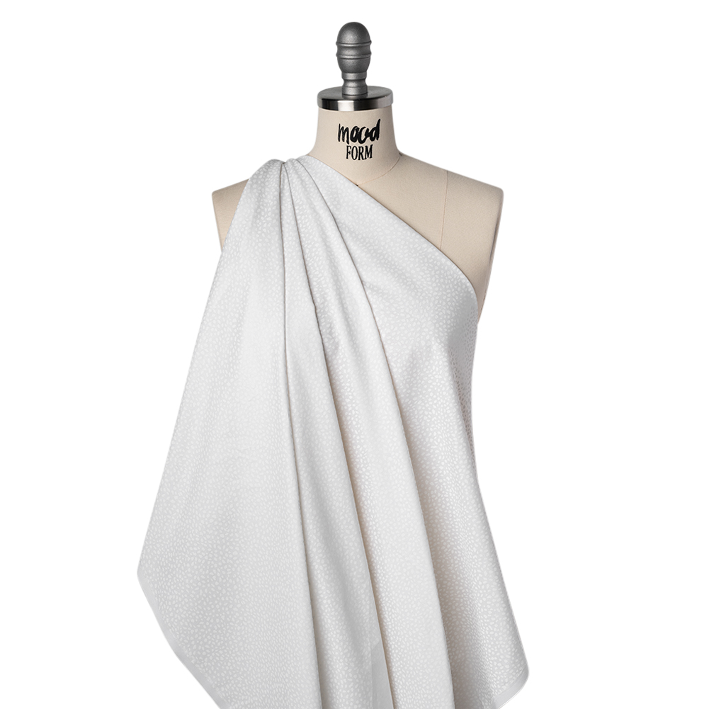 You’ll want to be in the spotlight with this White on White Spotty Printed Quilting Cotton, perfect for crafting lightweight shirts, flowing dresses, or adding an understated pop to home décor. Suggested Projects: Dresses, Shirts, Jackets, Quilts, Light Home Decor Content: 100% Cotton Stretch: NoneOpacity: Slightly Translucent Designed by Ghazal Razavi, this print features a tonal white cheetah-like pattern that adds depth and movement while keeping things minimalist and versatile. Whether used as a base or feature fabric, it brings wild charm without overpowering. Crafted from 100% cotton, the fabric features a soft hand and a breathable weave with a slightly translucent finish. It’s lightweight yet stable, making it a pleasure to work with whether you're sewing breezy shirts, summery dresses, or vibrant patchwork quilts. The smooth surface and structured drape also lend themselves well to home décor accents like pillowcases or wall hangings. For more body and opacity in apparel projects, consider pairing it with a lightweight lining.