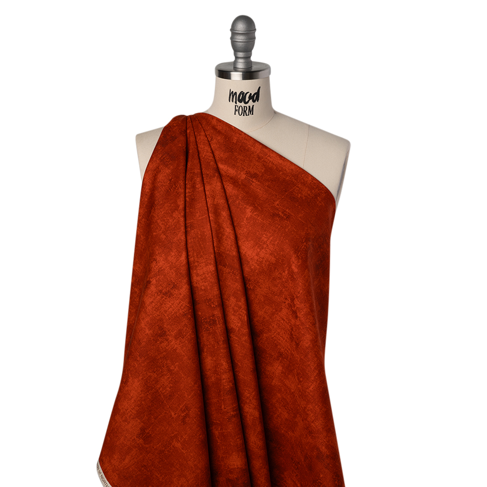 Lay a solid foundation with this Brick Painterly Texture Printed Quilting Cotton, an earthy essential for building durable quilts and tailored tops.Suggested Projects: Dresses, Shirts, Jackets, Quilts, Light Home Decor Content: 100% Cotton Stretch: NoneOpacity: Slightly Translucent Designed as part of the Canvas Collection, this cotton features a mottled, brushstroke-inspired surface that blends artistry with everyday utility. With a smooth hand, supple drape, and no stretch, this fabric is crafted for intricate quilt work—a stable weave and silky finish are perfect for anything from classic piecework and wholecloth quilting to appliqués and art quilts to English paper piecing—yet it effortlessly lends itself to lightweight home décor, craft, and fashion projects, too.Whether you’re designing breezy shift dresses, gathered patchwork skirts, or crisp button-downs and shorts, this fabric brings a touch of elegance to every stitch—or dream bigger with flowing floor-length gowns or sharply tailored jackets and trousers, perfect for an evening out or a day at the country club. Slightly translucent, a lining is recommended for added opacity and a refined finish.