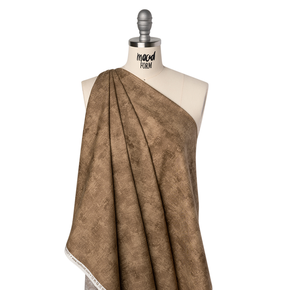 Buck against boring neutrals with this Buckskin Painterly Texture Printed Quilting Cotton—featuring a smooth hand and supple drape.Suggested Projects: Dresses, Shirts, Jackets, Quilts, Light Home DecorContent: 100% CottonStretch: NoneOpacity: Slightly TranslucentYou’ll paint a picture-perfect masterpiece with this quilting cotton, where neutral brown hues mingle like brushstrokes across a tactile canvas. With a smooth hand, supple drape, and no stretch, this fabric is crafted for intricate quilt work—a stable weave and silky finish are perfect for anything from classic piecework and wholecloth quilting to appliqués and art quilts to English paper piecing—yet it effortlessly lends itself to lightweight home décor, craft, and fashion projects, too.Whether you’re designing breezy shift dresses, gathered patchwork skirts, or crisp button-downs and shorts, this fabric brings a touch of elegance to every stitch—or dream bigger with flowing floor-length gowns or sharply tailored jackets and trousers, perfect for an evening out or a day at the country club. Slightly translucent, a lining is recommended for added opacity and a refined finish.