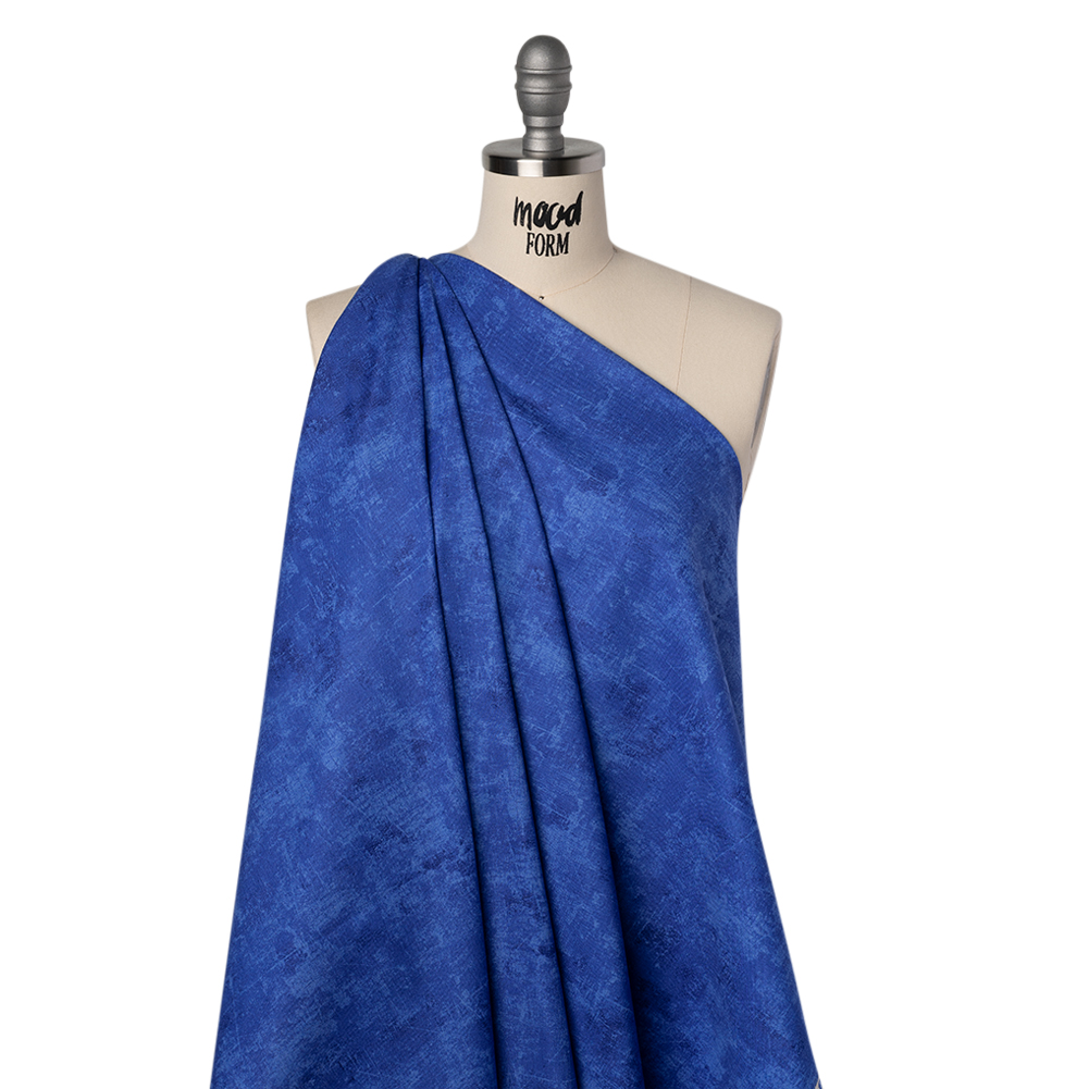 Keep it cool and classic with this Cobalt Painterly Texture Printed Quilting Cotton, perfect for crisp shirts and tailored summerwear. Suggested Projects: Dresses, Shirts, Jackets, Quilts, Light Home Decor Content: 100% Cotton Stretch: NoneOpacity: Slightly Translucent Rich, bold, and effortlessly polished–just like your next project! Designed as part of the Canvas Collection, this cotton features a mottled, brushstroke-inspired surface that blends artistry with everyday utility. With a smooth hand, supple drape, and no stretch, this fabric is crafted for intricate quilt work—a stable weave and silky finish are perfect for anything from classic piecework and wholecloth quilting to appliqués and art quilts to English paper piecing—yet it effortlessly lends itself to lightweight home décor, craft, and fashion projects, too.Whether you’re designing breezy shift dresses, gathered patchwork skirts, or crisp button-downs and shorts, this fabric brings a touch of elegance to every stitch—or dream bigger with flowing floor-length gowns or sharply tailored jackets and trousers, perfect for an evening out or a day at the country club. Slightly translucent, a lining is recommended for added opacity and a refined finish.