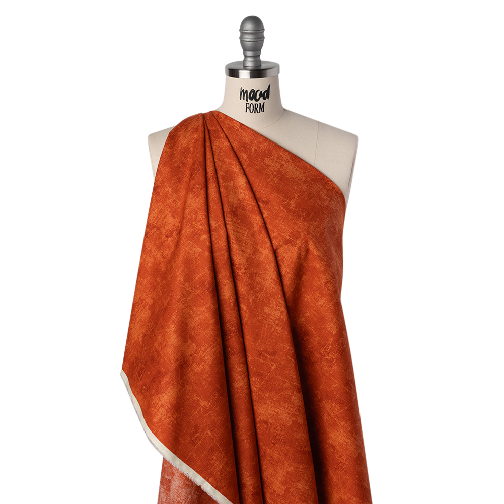Stir up something cozy with this Pumpkin Spice Painterly Texture Printed Quilting Cotton, a delicious choice for fall-inspired projects and beyond.Suggested Projects: Dresses, Shirts, Jackets, Quilts, Light Home Decor Content: 100% Cotton Stretch: NoneOpacity: Slightly Translucent Designed as part of the Canvas Collection, this cotton features a mottled, brushstroke-inspired surface that blends artistry with everyday utility. With a smooth hand, supple drape, and no stretch, this fabric is crafted for intricate quilt work—a stable weave and silky finish are perfect for anything from classic piecework and wholecloth quilting to appliqués and art quilts to English paper piecing—yet it effortlessly lends itself to lightweight home décor, craft, and fashion projects, too.Whether you’re designing breezy shift dresses, gathered patchwork skirts, or crisp button-downs and shorts, this fabric brings a touch of elegance to every stitch—or dream bigger with flowing floor-length gowns or sharply tailored jackets and trousers, perfect for an evening out or a day at the country club. Slightly translucent, a lining is recommended for added opacity and a refined finish.