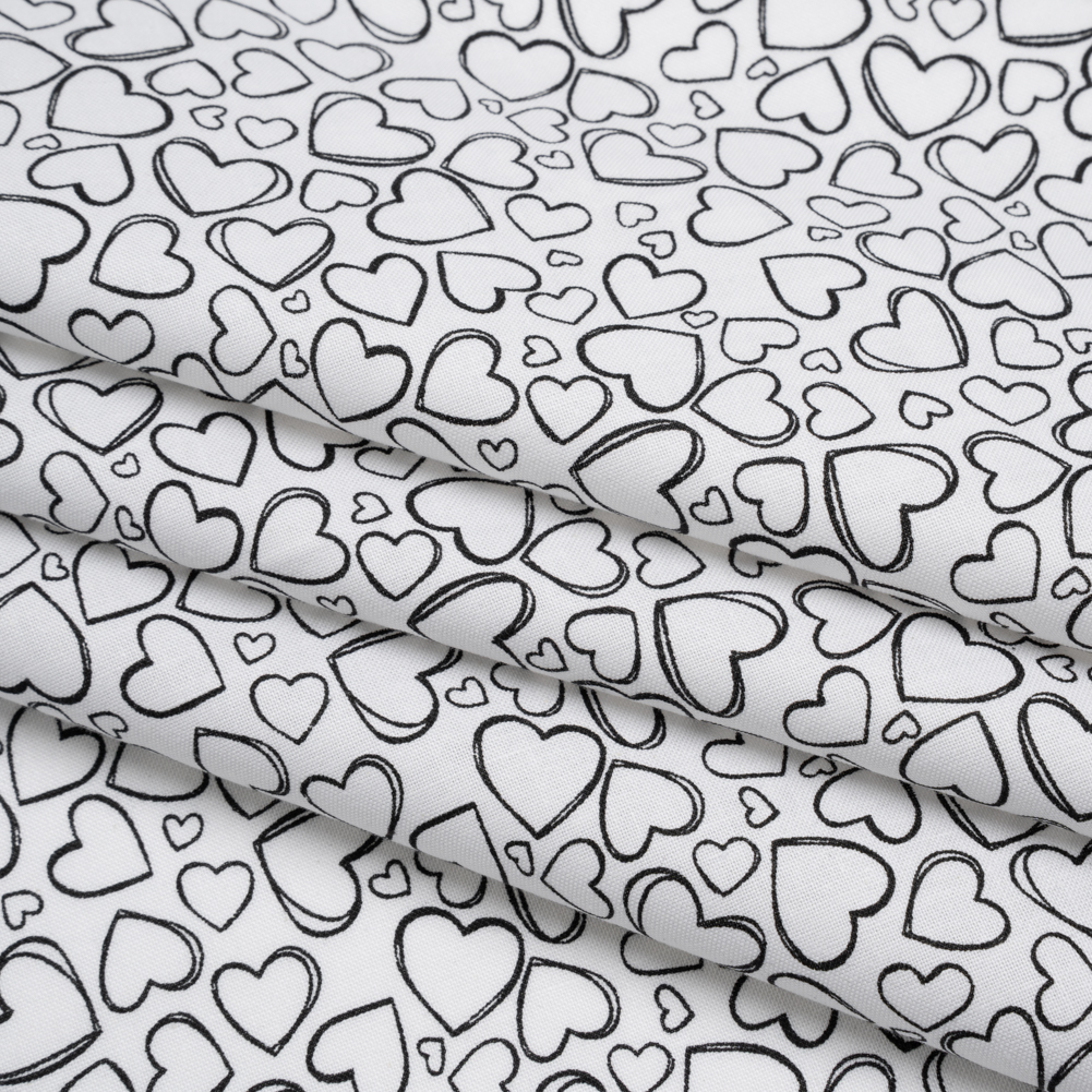 Get lost in your daydreams when working with this Black on White Doodle Hearts Printed Quilting Cotton by Patrick Lose—featuring a smooth hand and supple drape.Suggested Projects: Dresses, Shirts, Jackets, Quilts, Light Home DecorContent: 100% CottonStretch: NoneOpacity: Slightly TranslucentBlack hearts dance like daydreams across a white backdrop, each doodle capturing the sweet, wandering thoughts of a crush in quiet moments. With a smooth hand, supple drape, and no stretch, this fabric is crafted for intricate quilt work—a stable weave and silky finish are perfect for anything from classic piecework and wholecloth quilting to appliqués and art quilts to English paper piecing—yet it effortlessly lends itself to lightweight home décor, craft, and fashion projects, too.Whether you’re designing breezy shift dresses, gathered patchwork skirts, or crisp button-downs and shorts, this fabric brings a touch of elegance to every stitch—or dream bigger with flowing floor-length gowns or sharply tailored jackets and trousers, perfect for an evening out or a day in the sun. Slightly translucent, a lining is recommended for added opacity and a refined finish.