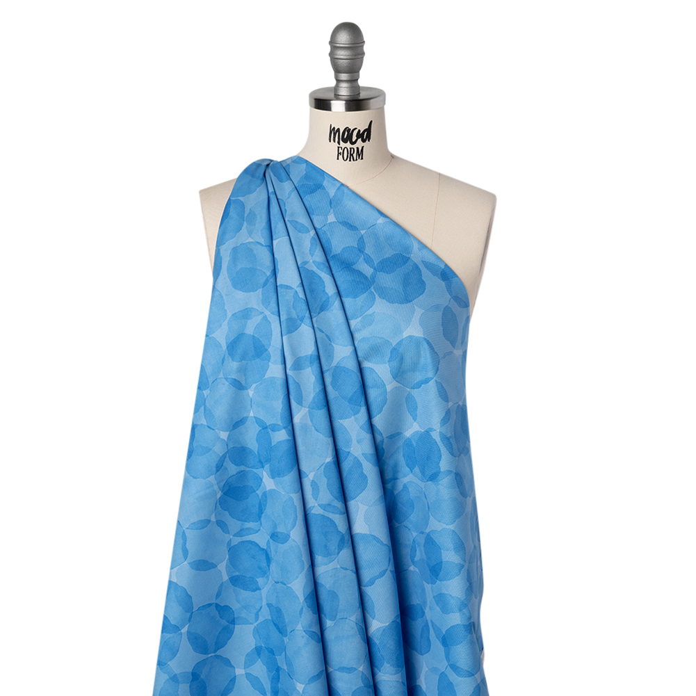 Bring a piece of your tropical vacation home with you with this Blue Curacao Juicy Watercolor Circles Printed Quilting Cotton by Patrick Lose—featuring a smooth hand and supple drape.Suggested Projects: Dresses, Shirts, Jackets, Quilts, Light Home DecorContent: 100% CottonStretch: NoneOpacity: Slightly TranslucentWatercolor circles ripple and overlap in vivid azure blue hues, like delicate watermarks that turn the fabric into an abstract work of art. With a smooth hand, supple drape, and no stretch, this fabric is crafted for intricate quilt work—a stable weave and silky finish are perfect for anything from classic piecework and wholecloth quilting to appliqués and art quilts to English paper piecing—yet it effortlessly lends itself to lightweight home décor, craft, and fashion projects, too.Whether you’re designing breezy shift dresses, gathered patchwork skirts, or crisp button-downs and shorts, this fabric brings a touch of elegance to every stitch—or dream bigger with crisp button-up and pleated skirt sets or sharply tailored jackets and trousers, perfect for a day out on the town. Slightly translucent, a lining is recommended for added opacity and a refined finish.