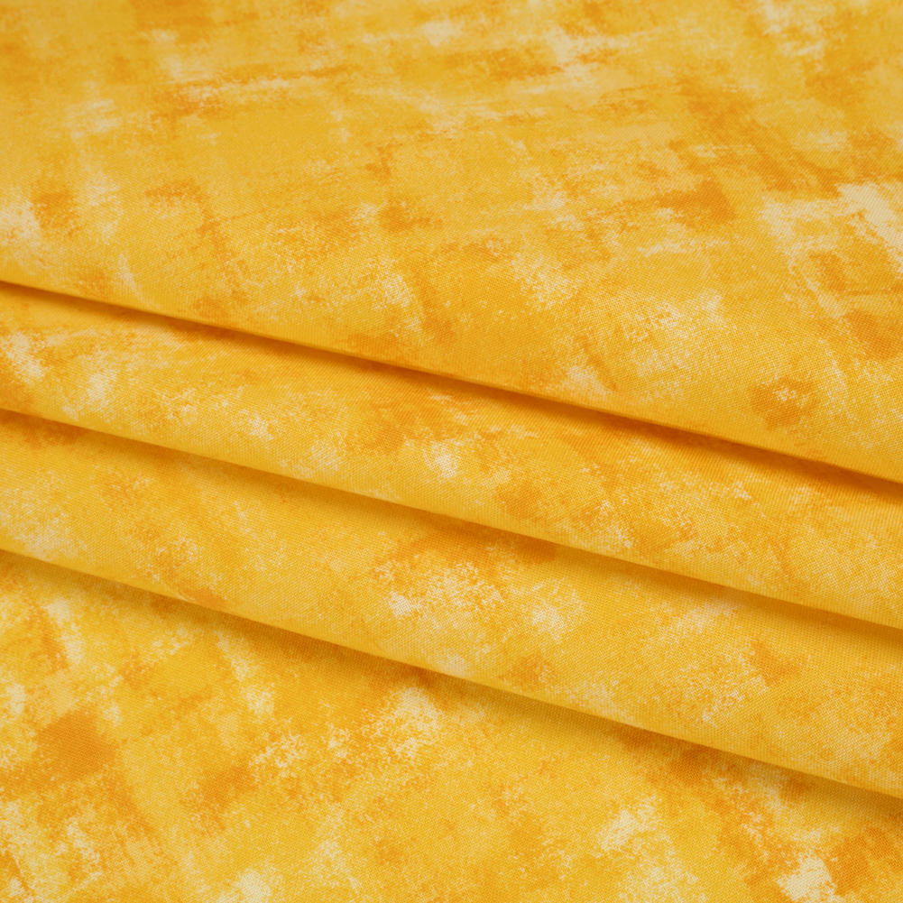 Lean into the playful tune playing in your soul with this Brassy Jazzy Painted Texture Printed Quilting Cotton—featuring a smooth hand and supple drape.Suggested Projects: Dresses, Shirts, Jackets, Quilts, Light Home DecorContent: 100% CottonStretch: NoneOpacity: Slightly TranslucentListen closely—the melody of creativity hums through this quilting cotton, where sunshine yellow and amber paint-like streaks compose a rhythm of texture and depth. With a smooth hand, supple drape, and no stretch, this fabric is crafted for intricate quilt work—a stable weave and silky finish are perfect for anything from classic piecework and wholecloth quilting to appliqués and art quilts to English paper piecing—yet it effortlessly lends itself to lightweight home décor, craft, and fashion projects, too.Whether you’re designing breezy shift dresses, gathered patchwork skirts, or crisp button-downs and shorts, this fabric brings a touch of elegance to every stitch—or dream bigger with crisp button-up and pleated skirt sets or sharply tailored jackets and trousers, perfect for a day out on the town. Slightly translucent, a lining is recommended for added opacity and a refined finish.