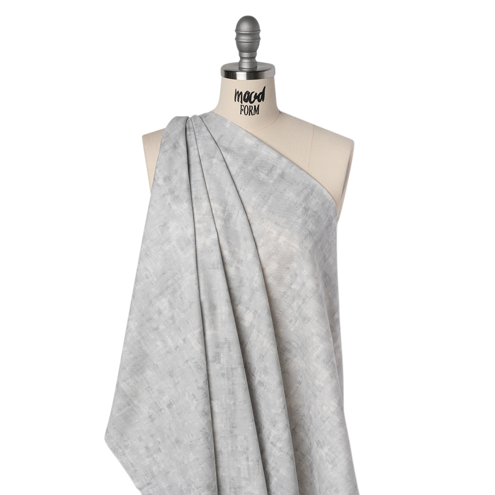 This simple Pearly White Jazzy Painted Texture Printed Quilting Cotton is sure to coax a smile to your face—featuring a smooth hand and supple drape.Suggested Projects: Dresses, Shirts, Jackets, Quilts, Light Home DecorContent: 100% CottonStretch: NoneOpacity: Slightly TranslucentListen closely—the melody of creativity hums through this quilting cotton, where pearly white and cool gray paint-like streaks compose a rhythm of texture and depth. With a smooth hand, supple drape, and no stretch, this fabric is crafted for intricate quilt work—a stable weave and silky finish are perfect for anything from classic piecework and wholecloth quilting to appliqués and art quilts to English paper piecing—yet it effortlessly lends itself to lightweight home décor, craft, and fashion projects, too.Whether you’re designing breezy shift dresses, gathered patchwork skirts, or crisp button-downs and shorts, this fabric brings a touch of elegance to every stitch—or dream bigger with crisp button-up and pleated skirt sets or sharply tailored jackets and trousers, perfect for a day out on the town. Slightly translucent, a lining is recommended for added opacity and a refined finish.