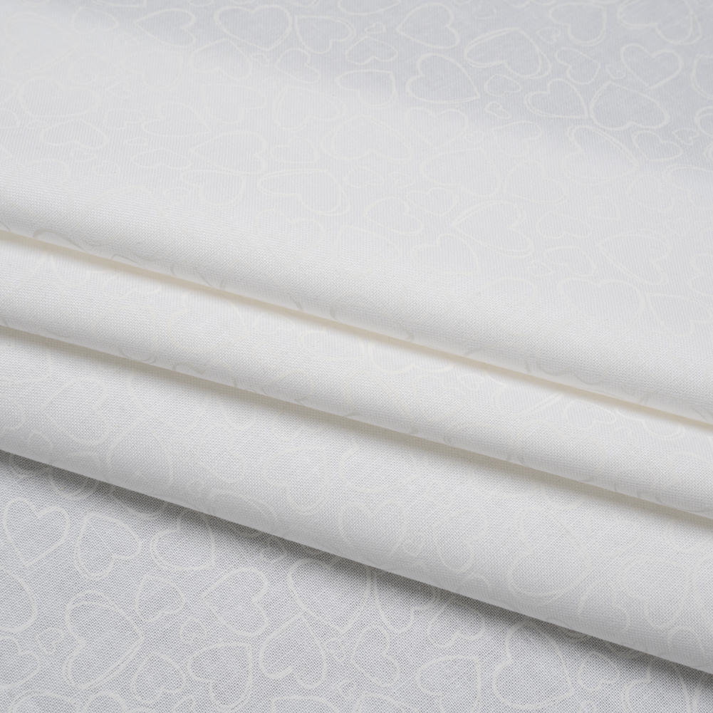 This White on White Doodle Hearts Printed Quilting Cotton by Patrick Lose will quickly become a beloved favorite—featuring a smooth hand and supple drape.Suggested Projects: Dresses, Shirts, Jackets, Quilts, Light Home DecorContent: 100% CottonStretch: NoneOpacity: Slightly TranslucentWhite hearts dance like daydreams across a white backdrop, each doodle capturing the sweet, wandering thoughts of a crush in quiet moments. With a smooth hand, supple drape, and no stretch, this fabric is crafted for intricate quilt work—a stable weave and silky finish are perfect for anything from classic piecework and wholecloth quilting to appliqués and art quilts to English paper piecing—yet it effortlessly lends itself to lightweight home décor, craft, and fashion projects, too.Whether you’re designing breezy shift dresses, gathered patchwork skirts, or crisp button-downs and shorts, this fabric brings a touch of elegance to every stitch—or dream bigger with flowing floor-length gowns or sharply tailored jackets and trousers, perfect for an evening out or a day in the sun. Slightly translucent, a lining is recommended for added opacity and a refined finish.