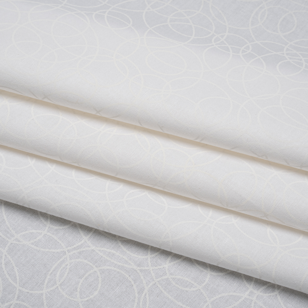 There’s always a perfect occasion for this White on White Tangled Circles Printed Quilting Cotton by Patrick Lose—featuring a smooth hand and supple drape.Suggested Projects: Dresses, Shirts, Jackets, Quilts, Light Home DecorContent: 100% CottonStretch: NoneOpacity: Slightly TranslucentTangle with your creativity as white circular outlines bounce, overlap, and dance across a white backdrop—inviting playful movement and modern edge into all your designs. With a smooth hand, supple drape, and no stretch, this fabric is crafted for intricate quilt work—a stable weave and silky finish are perfect for anything from classic piecework and wholecloth quilting to appliqués and art quilts to English paper piecing—yet it effortlessly lends itself to lightweight home décor, craft, and fashion projects, too.Whether you’re designing breezy shift dresses, gathered patchwork skirts, or crisp button-downs and shorts, this fabric brings a touch of elegance to every stitch—or dream bigger with flowing floor-length gowns or sharply tailored jackets and trousers, perfect for an evening out or a day in the sun. Slightly translucent, a lining is recommended for added opacity and a refined finish.