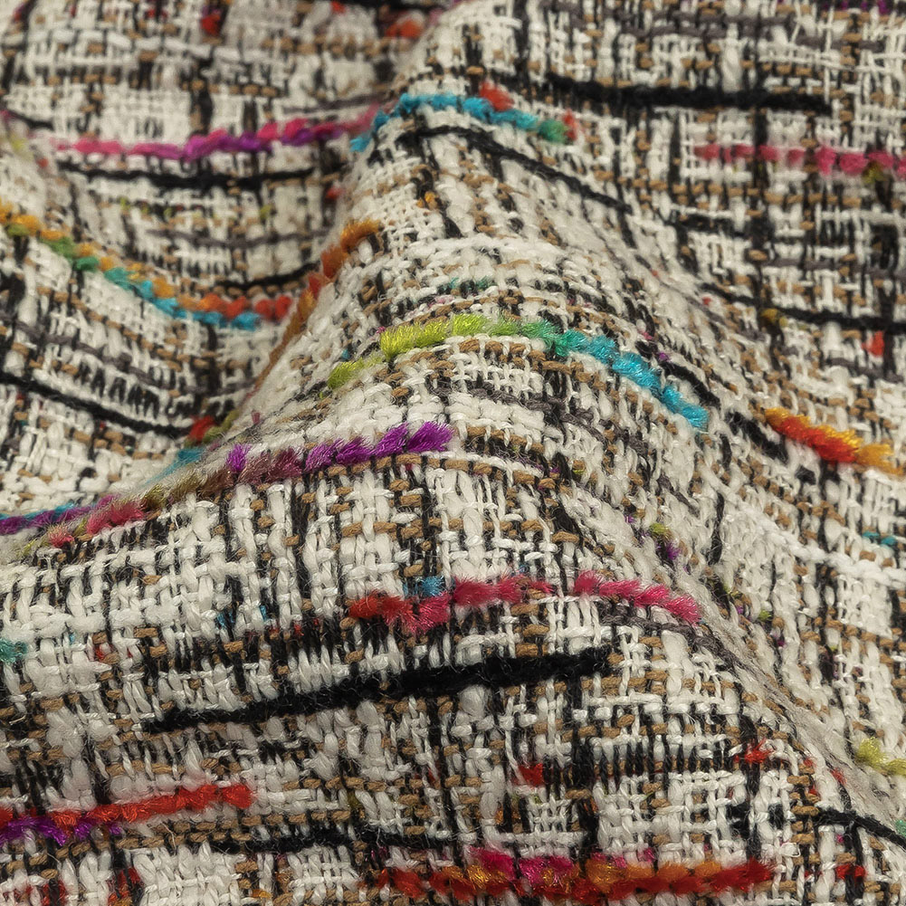 When in doubt, use not one but multiple colors to brighten up your living space with this Prism Viscose, Cotton and Linen Chenille Tweed! A cozy tweed pattern with columns of stunning colors offers a soft, crisp hand that is tactile and a little fuzzy, plus a stiff, malleable drape.