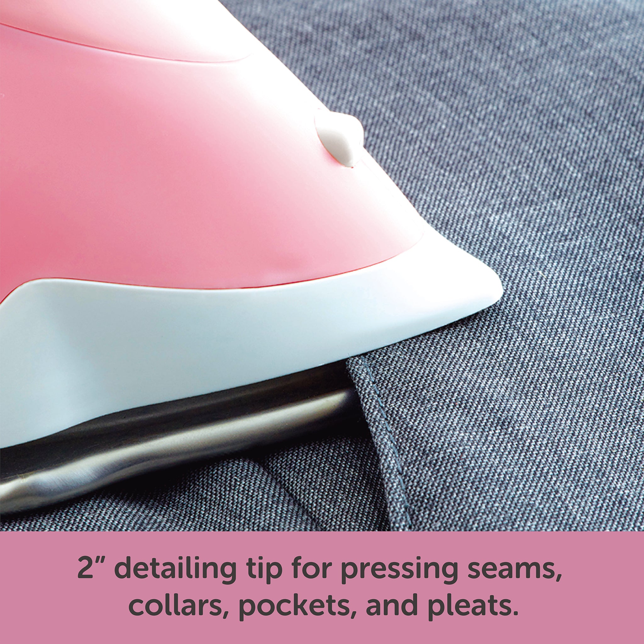 • 2-inch Detailer Tip: Perfect for seams, bias tape, + tight corners. Press under and over pleats, pockets, cuffs, and collars easily.