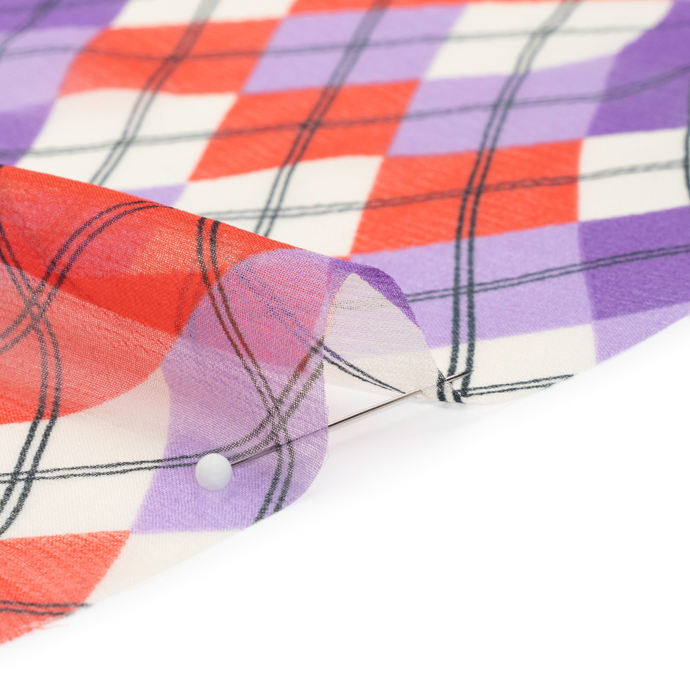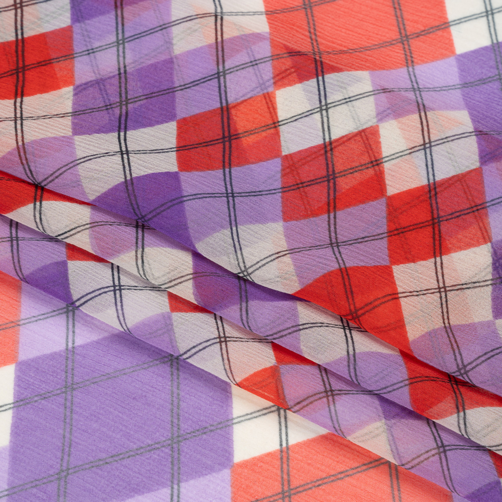 Purple, Red and Cream Argyle Crinkled Silk Chiffon