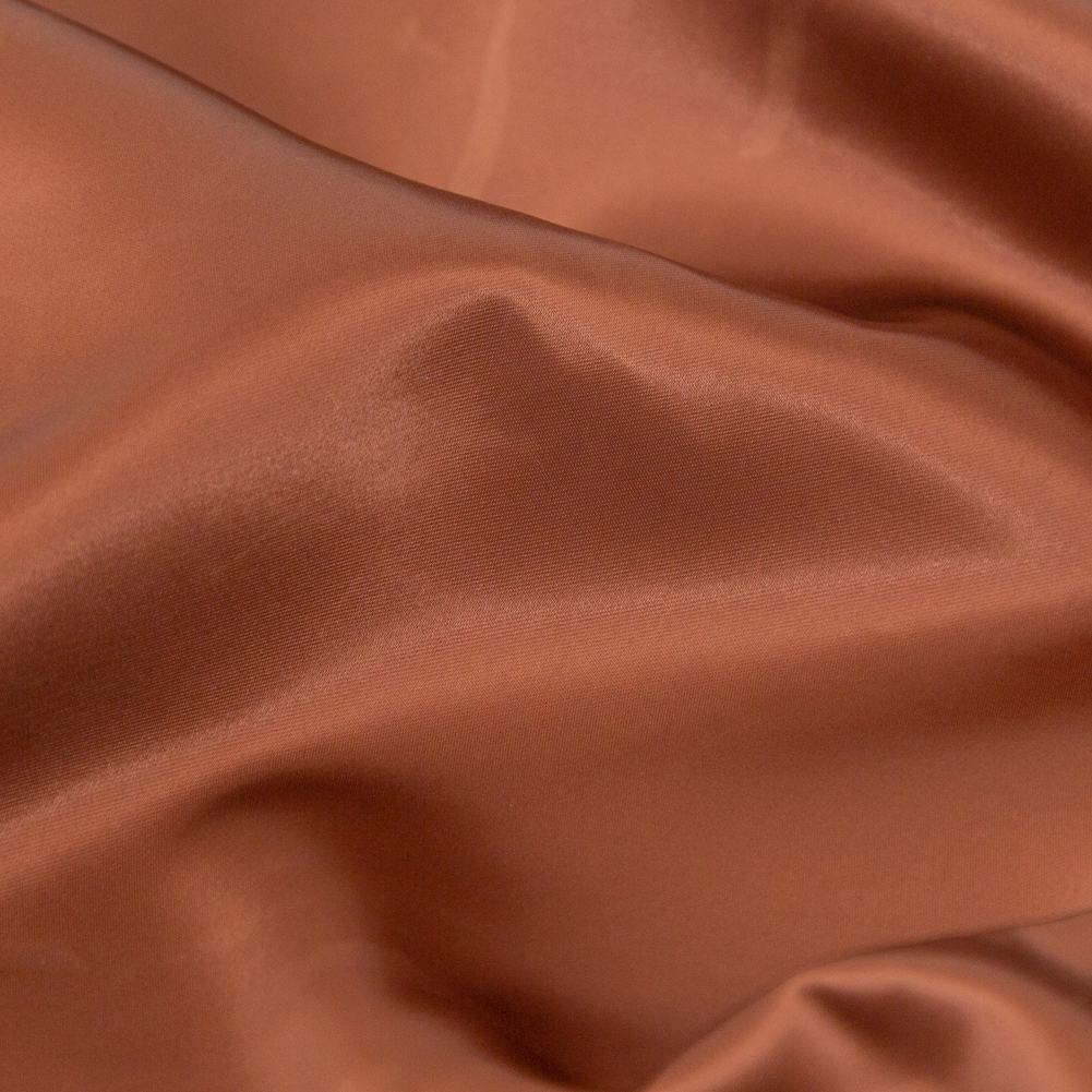 We wouldn't want you to spill your latte on this Radiant Brandy Brown Satin, courtesy of Rag & Bone. With a glossy facing and a truly smooth hand, the thin construction yields a lightweight, silk-y look and feel without the cost. Use this no stretch copper-brown gem to create boat-neck dresses with tiered skirts, stress-less evening gowns, poofy-sleeved blouses and more. Just about completely opaque, a lining is not of necessity unless added structure or modesty are desired. This satin would make for an excellent lining in outerwear garments as well.