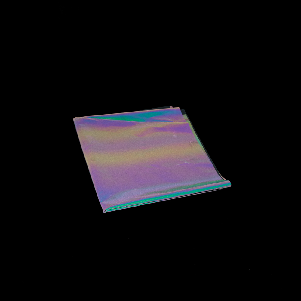 You won't need to chase rainbows in this Rainbow Reflective Fabric, you'll BE the rainbow! A multicolor oil slick face paired with glass bead technology allows for a mesmerizing "reflective" effect. Glass bead technology uses tiny glass beads to reflect light. Incoming light beams bend as they pass through the front surface of each glass bead and reflect off a mirrored surface behind the bead. The beam then passes back through the front surface and returns toward the light source. The process in return gives you a killer fabric to use for trimming, lining, safety garments, sportswear, etc. Try using this reflective fabric for a windbreaker meant for a nighttime electronic music festival.