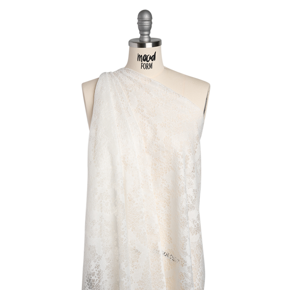 It’s easy to say “I do” to this White PFD Ornate Leafy Chevrons Raschel Lace Panel with Finished Edges—featuring a soft, tactile hand and fluid, airy drape.Suggested Projects: Shirts, Skirts, Dresses, LingerieContent: 66% Nylon, 34% RayonStretch: NoneOpacity: SheerOrnate leafy chevrons zig zag across this white raschel lace panel. A fluid, airy drape and soft, slightly tactile hand makes it ideal for loose, flowy silhouettes—with a finished edge making completing your projects that much easier. With its delicate design, we envision waterfall skirts, breezy button-up shirts, sheer blouses, lingerie, and more! Sheer, use it as a panel or insert a lining for more opacity. Please note: This is a panel measuring 47” by 59”.