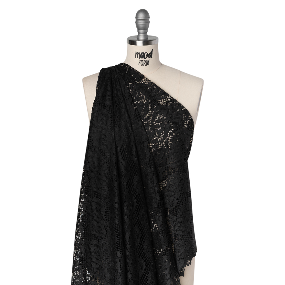 Stretch Corded Lace with Finished Edges - Black Bold Blooming Florals - Dania Collection