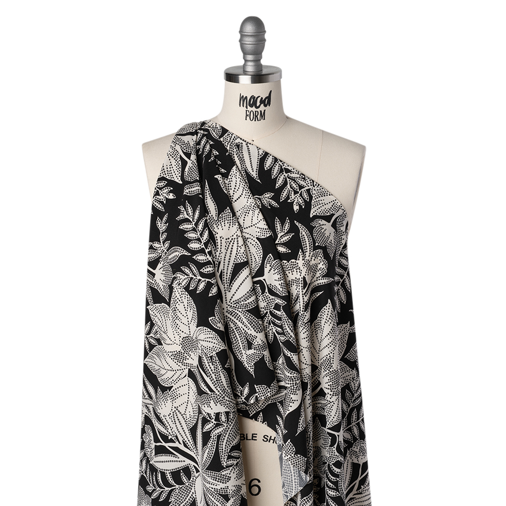 Rayon and Linen Challis - Black and Ivory Floral - Designer Deadstock