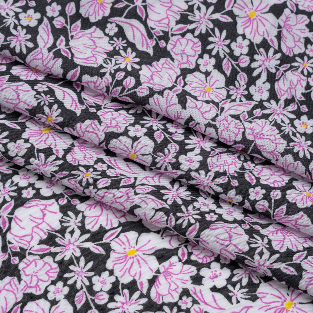 Rayon Batiste - Charcoal, White and Pink Floral