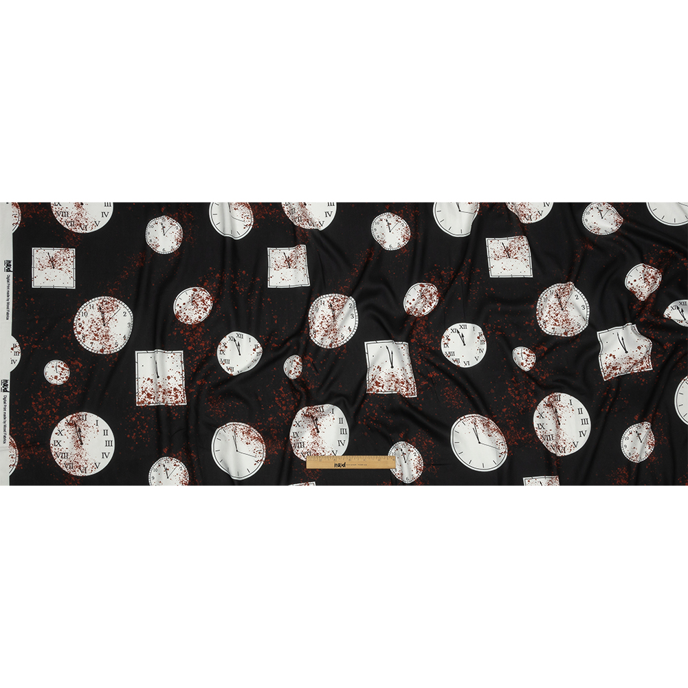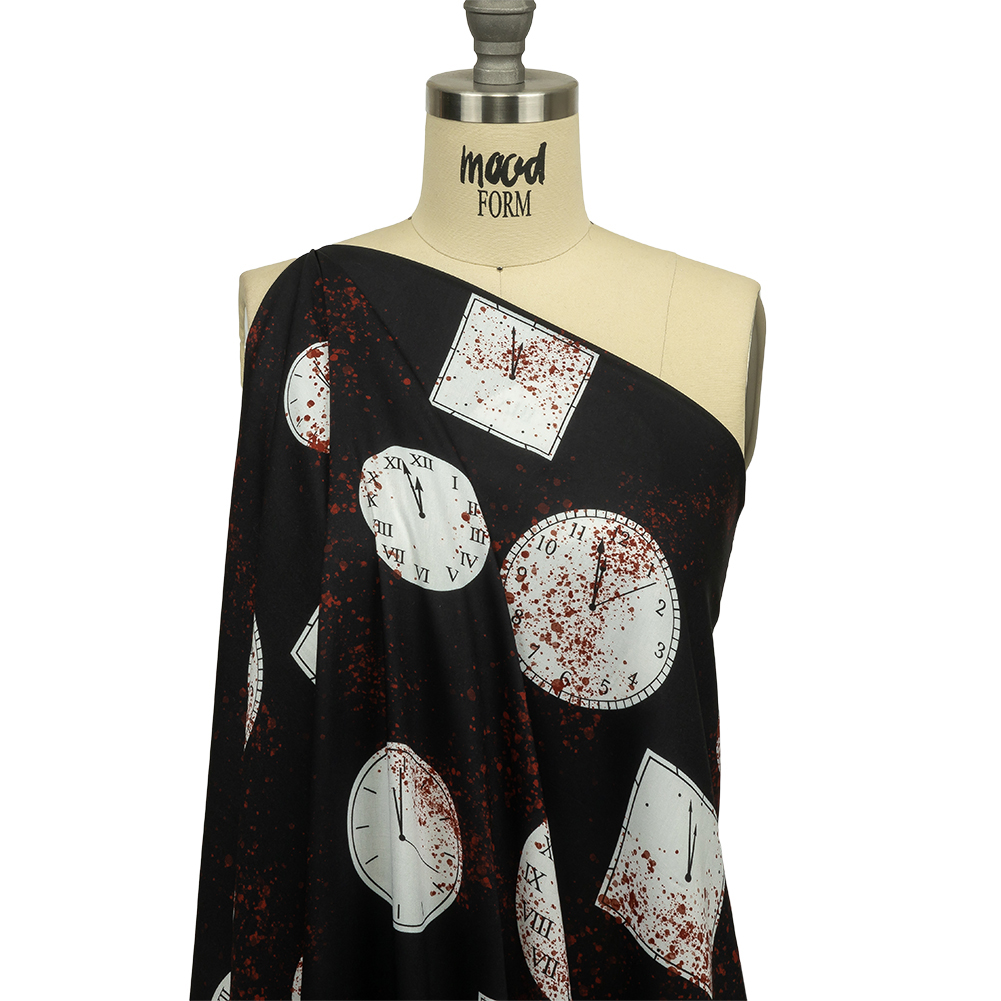 Rayon Batiste – Clocks and Blood Splatter – The Masque Print – Mood Exclusive Nevermore Collection