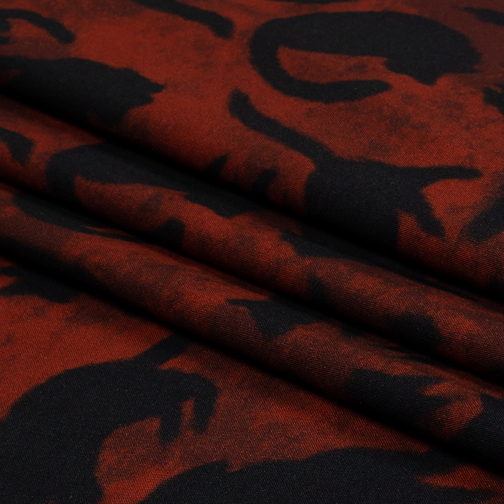 From a boiling rage of red shades appears the phantasm of the cat. Our Mood Exclusive Black Cat Rayon Batiste offers an inescapable abundance of feline silhouettes over its surface. Designed in-house by Evvy Veneziale as part of The Nevermore Collection, this supple material is no less luxurious for its plain weave structure. Fluid, soft, and without stretch, craft everything from billowing blouses with bows at the neck to dreamy dresses with full circle skirts. Somewhat translucent, particularly in lighter colors, a lining is recommended where opacity and additional structure are desired. Swing by our Mood Sewciety Blog to take a glance at over 300 free sewing patterns for more inspiration. For rayon batiste, we recommend the Clay Blouse, Nyssa Dress, and Calendula Blouse.MoodEarth Verified: This eco-friendly material is OEKO-TEX certified; tested independently and worldwide, the certification system evaluates finished, semi-finished, and raw textiles while thoroughly covering chemicals, harmful substances, and precautionary parameters. For more information on Mood's sustainability initiatives, check out MoodEarth here.