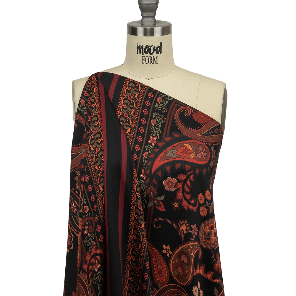 Rayon Challis - Black and Red Paisley - Kaleidoscope Dreams Print - Mood Exclusive Rockland Collection