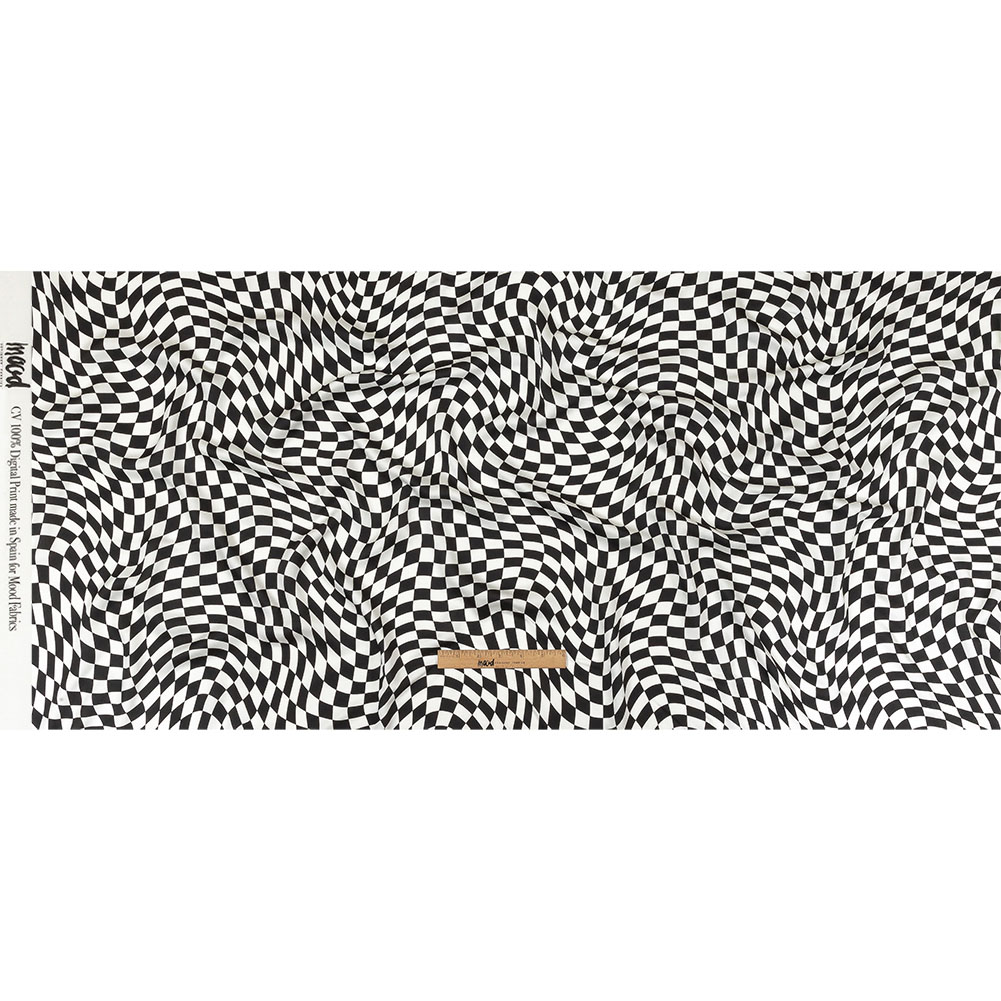 Look fabulous for that very important date in this Mood Exclusive Down the Rabbit Hole Rayon Challis! A trippy black and white checkerboard recalls the aesthetics of Lewis Carroll’s Alice in Wonderland.