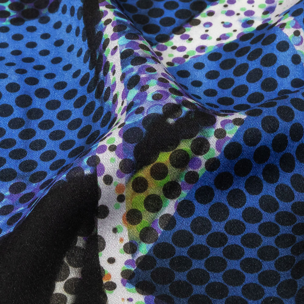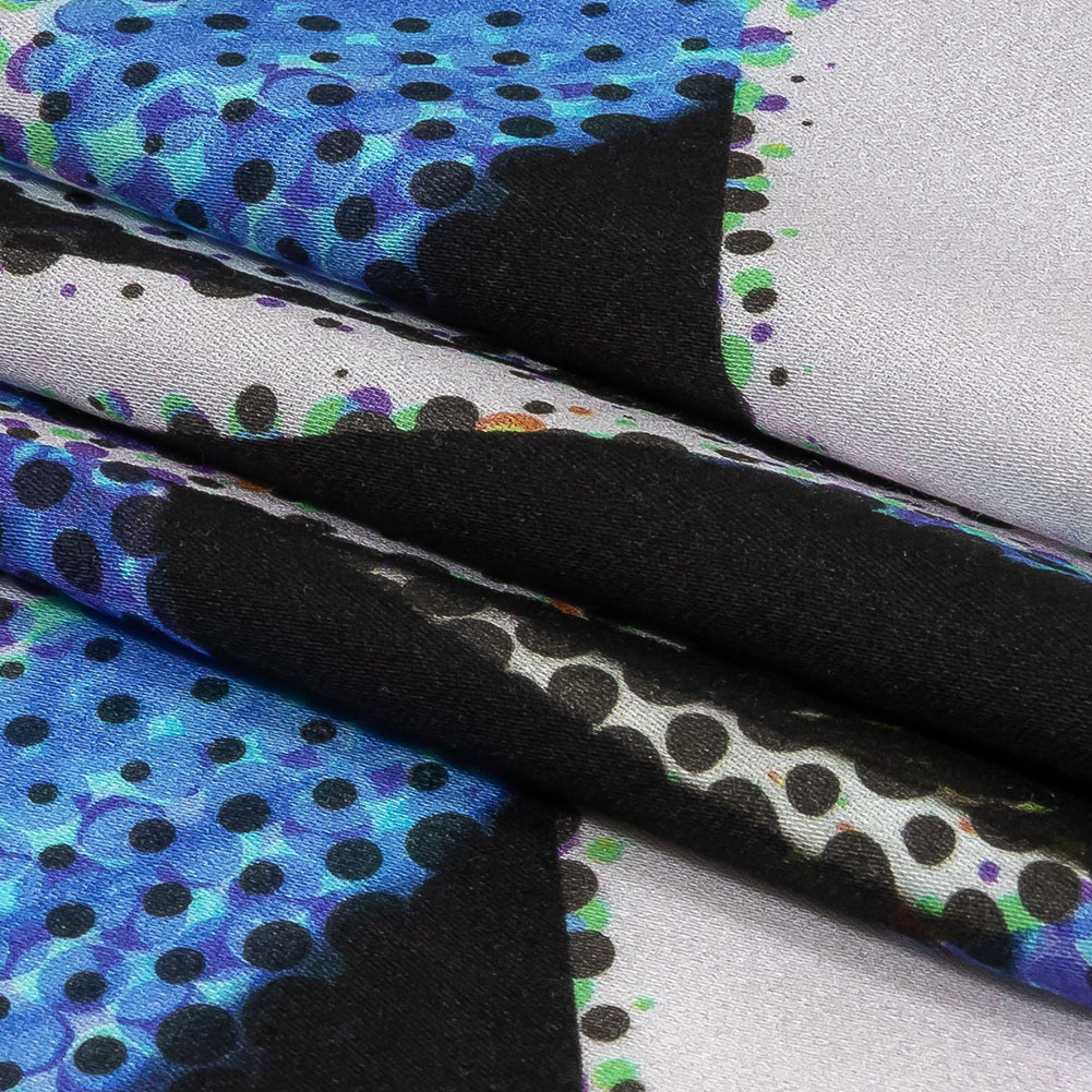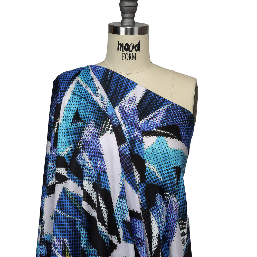 Things may get complicated over time, but this Mood Exclusive Tangled Up in Blue Rayon Challis invites us to find the beauty in the chaos. A mishmash of graphic elements are thrown together over a white ground, evoking the Abstract Expressionist art of the 1940's and ‘50s. Part of The Indigo Collection, this Challis is fluid and billowy in drape, with a soft, smooth feel. Boasting a subtle sheen and undeniably rich colors, craft sweet tank tops, breezy trapeze dresses, or effortless blouses. Slightly translucent, a lining may be desired for increased opacity depending on its application. Swing by our Mood Sewciety Blog to take a glance at over 300 free sewing patterns for more inspiration. For rayon Challis, we recommend the Nettle Wrap Dress, Clay Blouse, and Amaryllis Dress.MoodEarth Verified: This fabric is composed of viscose fibers derived from suppliers ranked as Green Shirt by Canopy, earned with attention to sustainable wood and pulp sourcing, backed by efforts to conserve critical forests. For more information on Mood's sustainability initiatives, check out MoodEarth here.