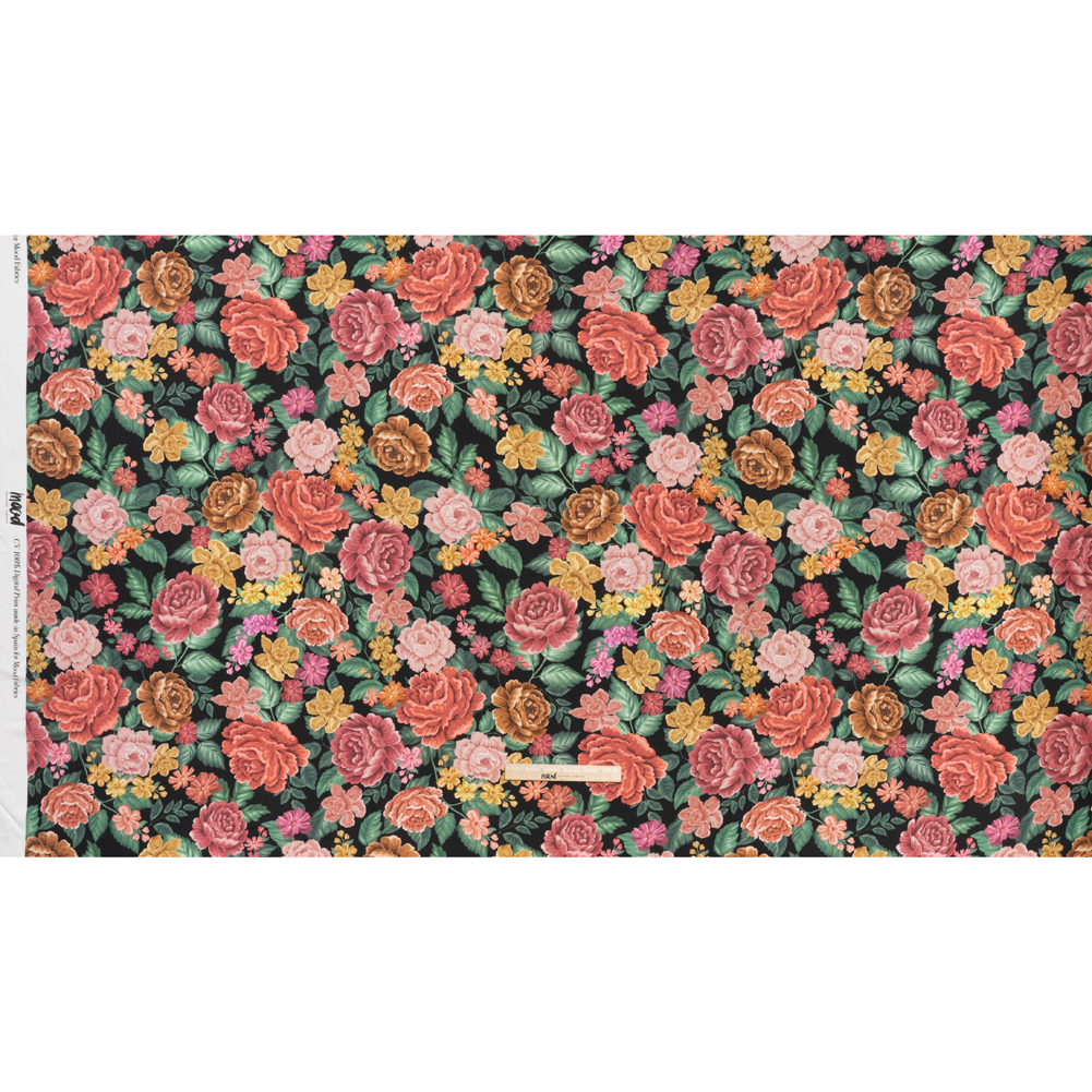 Be the first to review “Rayon Challis – Coral Pink, Yellow and Green Flowers on Black – Mood Exclusive Midnight Garden Party Print”