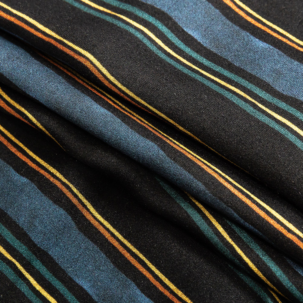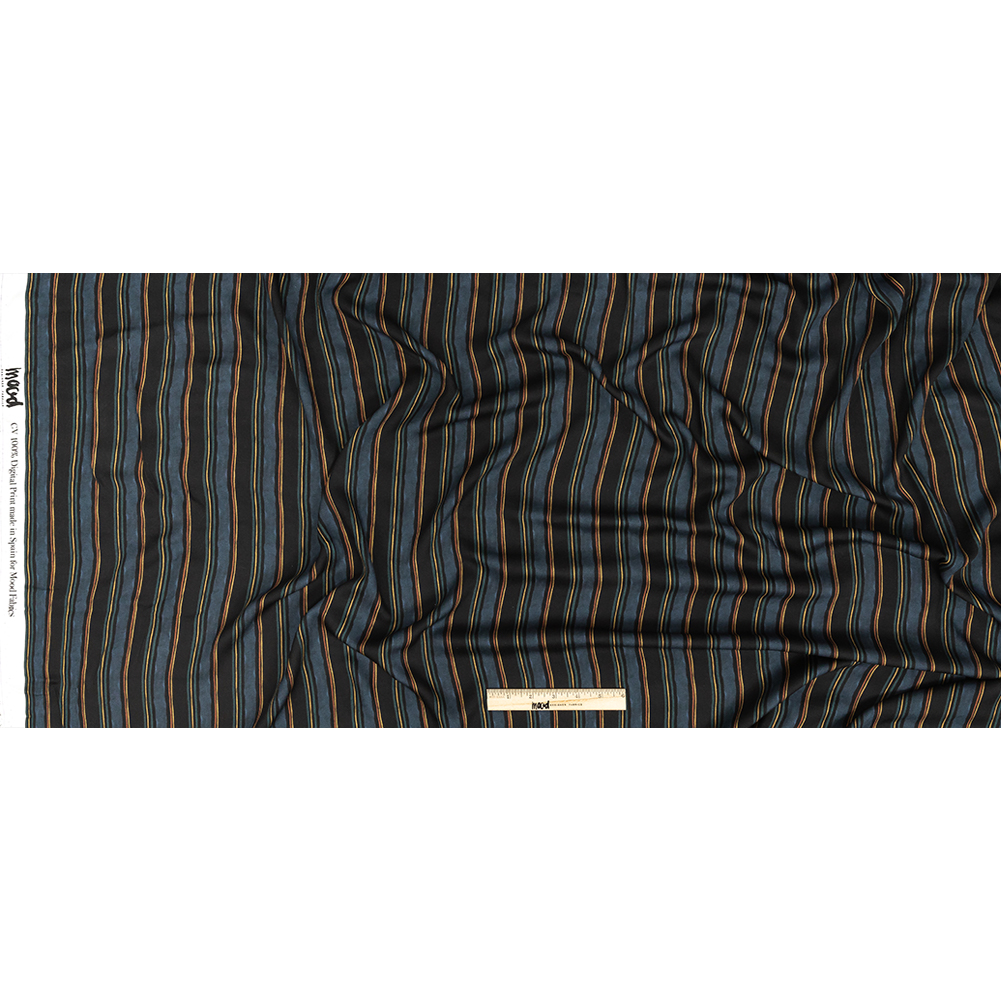 Rayon Challis - Navy and Blue Stripes - Linear Transcendence Print - Mood Exclusive Tumunyana Collection