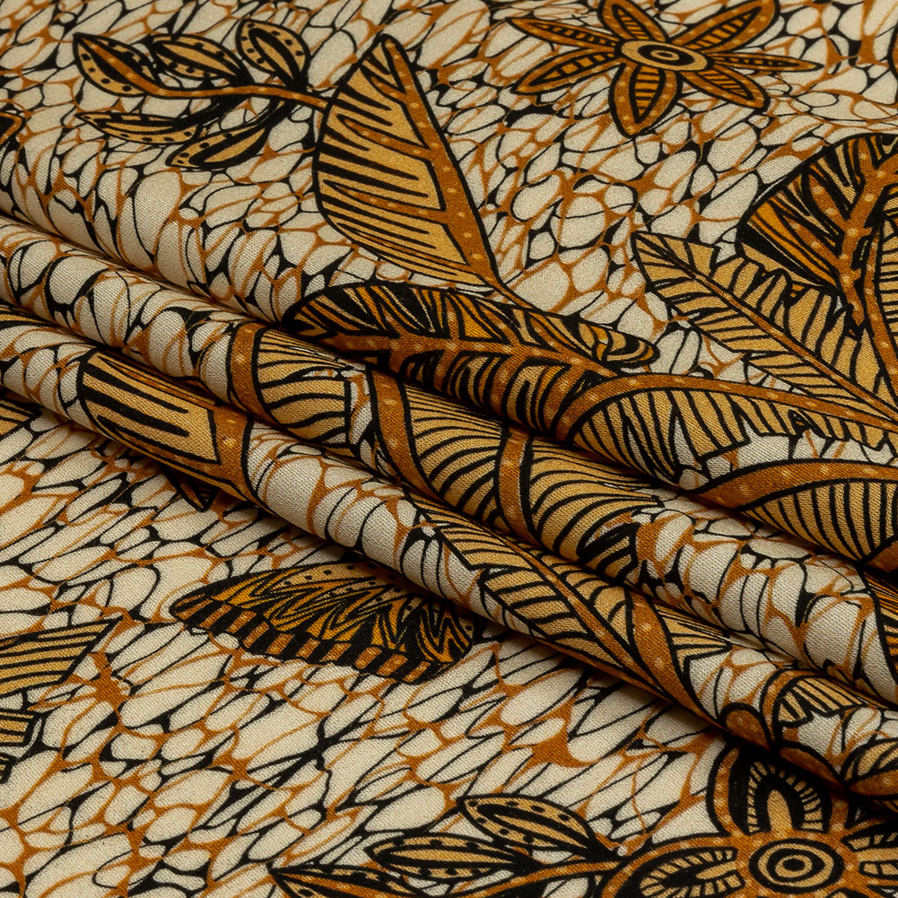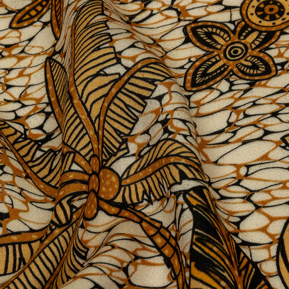 Our Mood Exclusive Sunny Summers Rayon Challis feels like coming home to soothe your sunburn after a family trip to the beach. Summer draws to an end, but the memories of palm trees and sunshine and the way the sand looked through the surf will last for ages, preserved in a batik-style design. A cozy addition to The Rockland Collection, this Challis is fluid and billowy in drape, with a soft, smooth feel. Boasting a subtle sheen and undeniably rich colors, craft sweet tank tops, breezy trapeze dresses, or effortless blouses. Slightly translucent, a lining may be desired for increased opacity depending on its application. Swing by our Mood Sewciety Blog to take a glance at over 300 free sewing patterns for more inspiration. For rayon Challis, we recommend the Clay Shirt, Nyssa Dress, and Calendula Blouse.MoodEarth Verified: This fabric is composed of viscose fibers derived from suppliers ranked as Green Shirt by Canopy, earned with attention to sustainable wood and pulp sourcing, backed by efforts to conserve critical forests. For more information on Mood's sustainability initiatives, check out MoodEarth here.