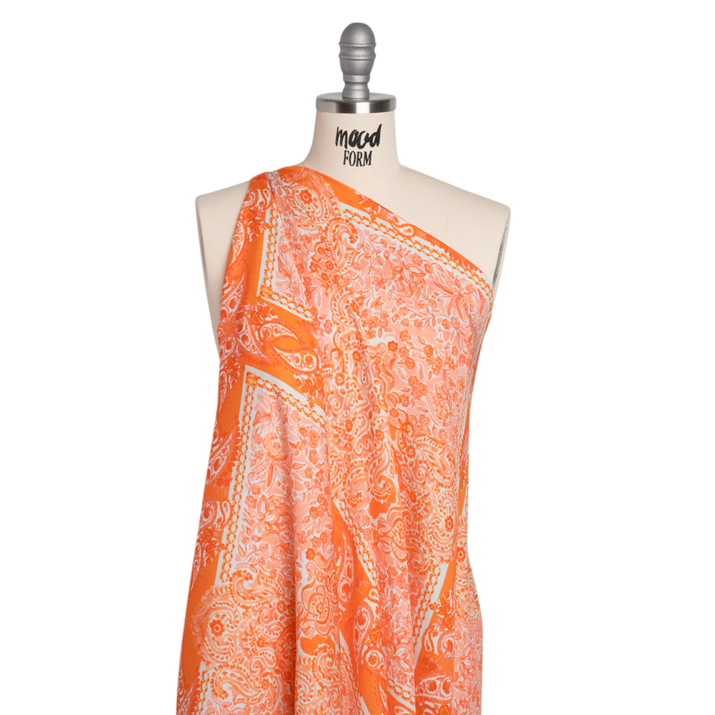 Rayon Challis Panel - Orange Paisley Floral - Sicilian Summer Print - Mood Exclusive Chariot Collection