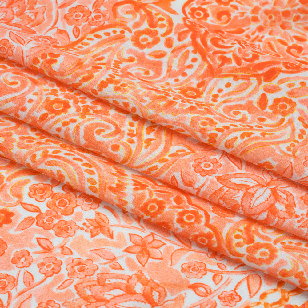 Rayon Challis Panel – Orange Paisley Floral – Sicilian Summer Print – Mood Exclusive Chariot Collection