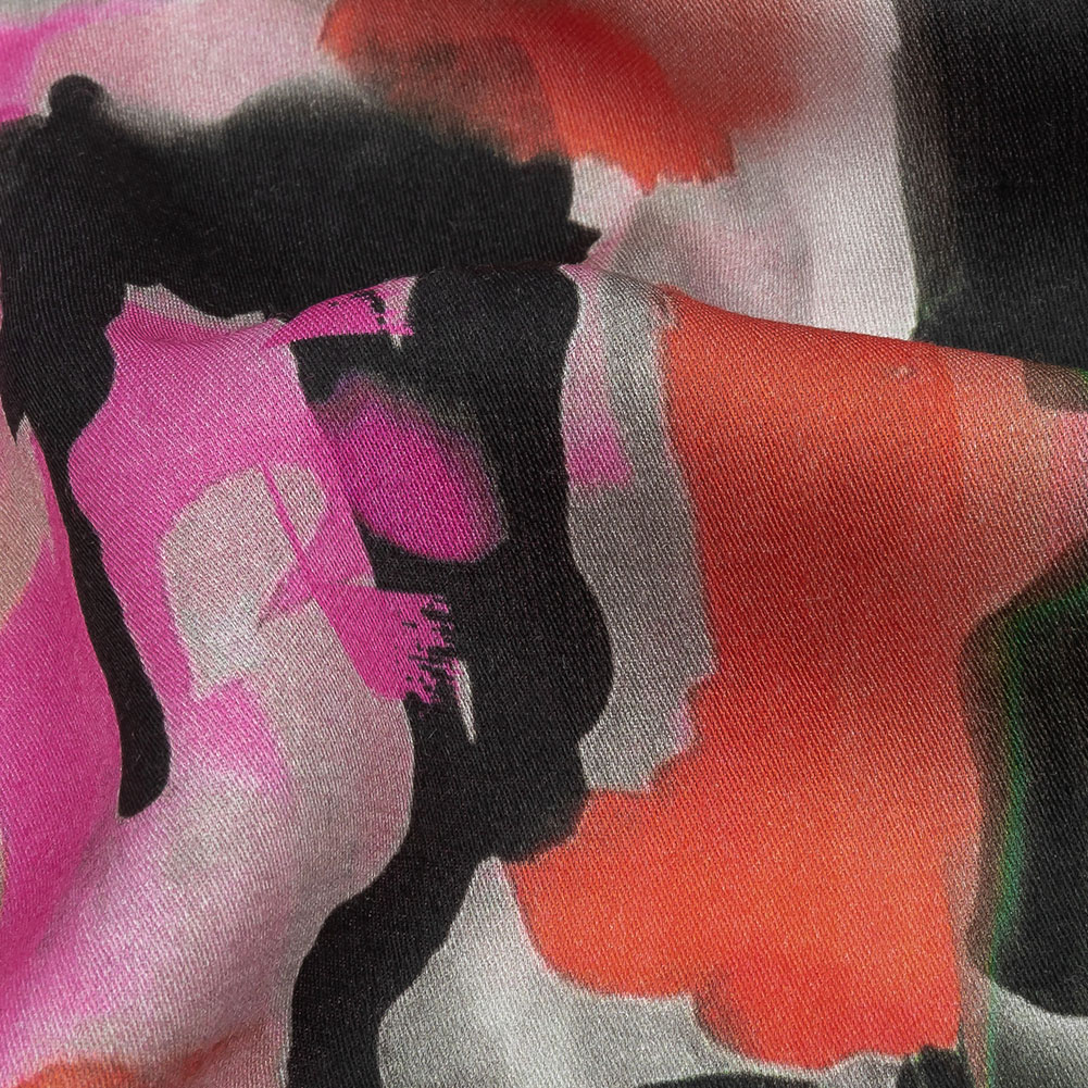 For those seeking fame and fortune, the city has no shortage of opportunity and inspiration. Our Mood Exclusive Painted Aspirations Rayon Challis holds a wealth of potential in sprayed and splattered abstraction in shades of pink and orange. A chic addition to The Metro Collection, this Challis is fluid and billowy in drape, with a soft, smooth feel. Boasting a subtle sheen and undeniably rich colors, craft sweet tank tops, breezy trapeze dresses, or effortless blouses. Slightly translucent, a lining may be desired for increased opacity depending on its application. Swing by our Mood Sewciety Blog to take a glance at over 300 free sewing patterns for more inspiration. For rayon Challis, we recommend the Clay Shirt, Nyssa Dress, and Calendula Blouse.MoodEarth Verified: This fabric is composed of viscose fibers derived from suppliers ranked as Green Shirt by Canopy, earned with attention to sustainable wood and pulp sourcing, backed by efforts to conserve critical forests. For more information on Mood's sustainability initiatives, check out MoodEarth here.