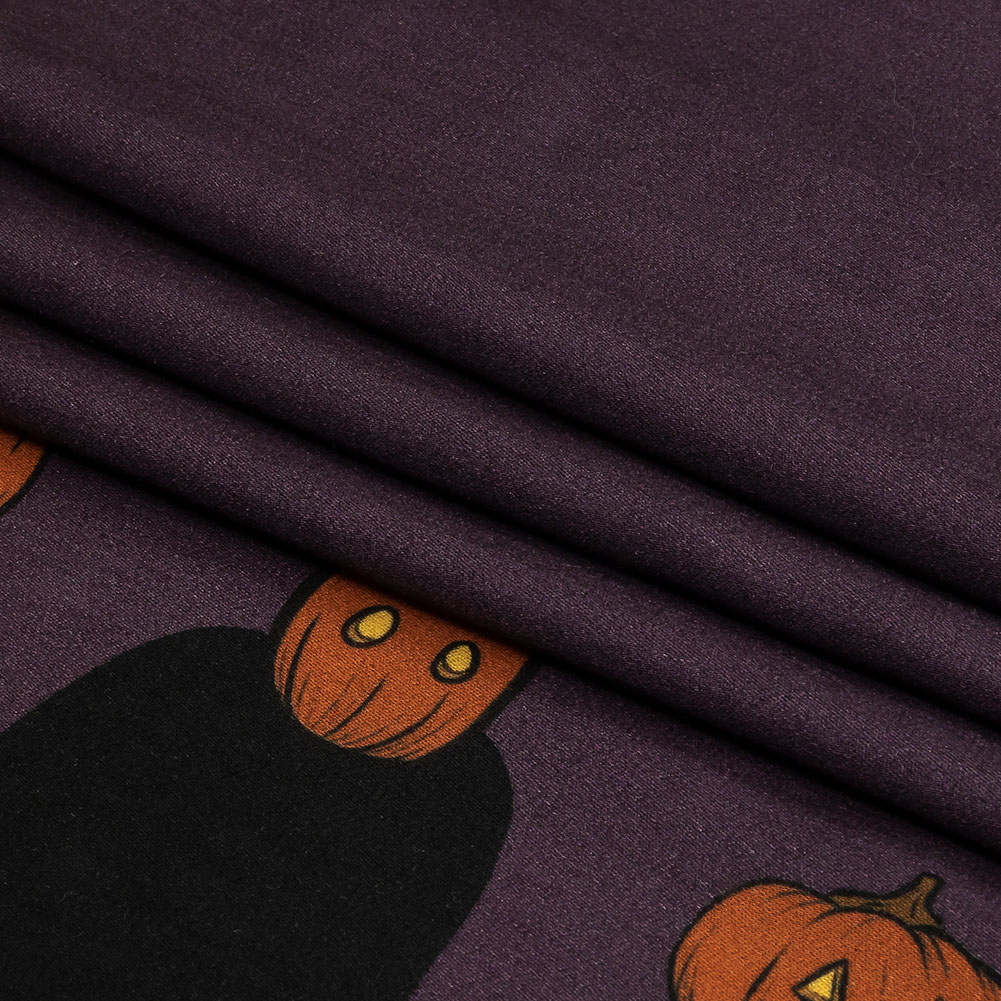 Rayon Challis - Purple Pumpkin People Border - Pumpkin Parade Print - Mood Exclusive Jack-O-Lantern Collection