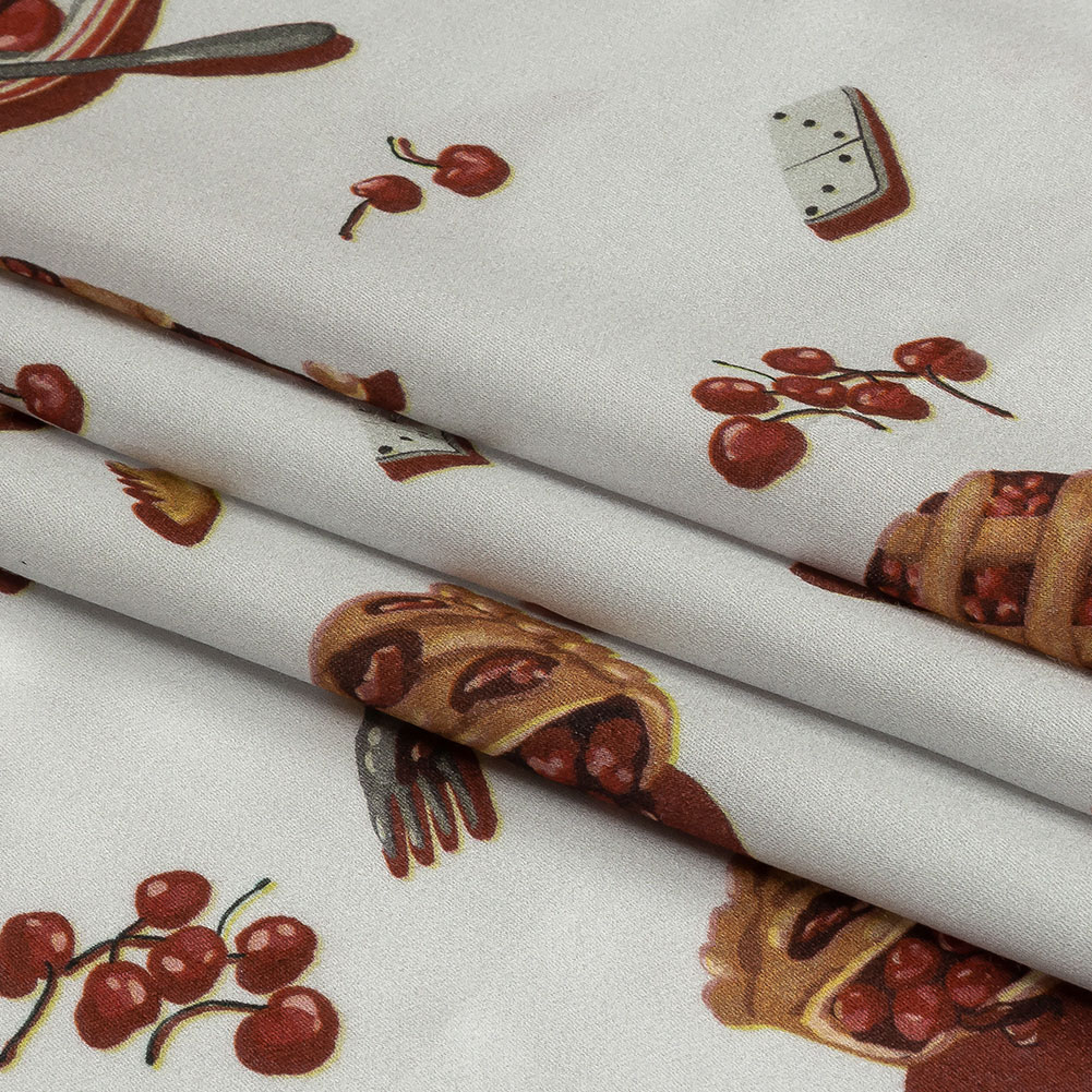 Rayon Challis - White Cherry Pies - Baked Fresh Print - Mood Exclusive Rockland Collection