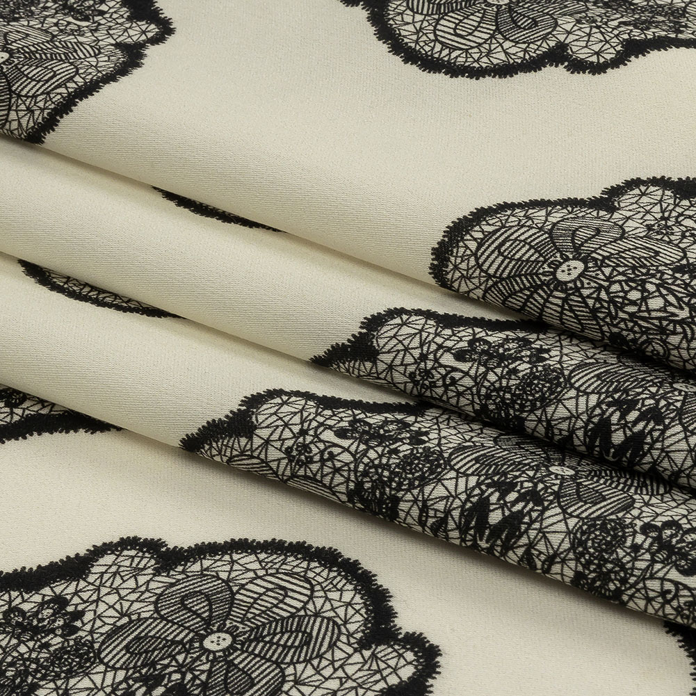 Rayon Challis - White Lacy Medallions - Cathedral Windows Print - Mood Exclusive Metro Collection