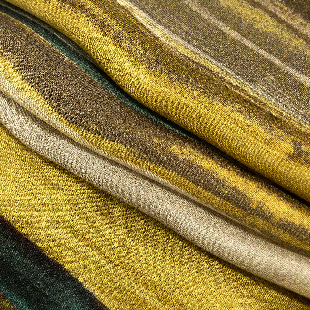 Rayon Challis - Yellow and Royal Blue Painted Stripes - Nilotic Wasteland Print - Mood Exclusive Tumunyana Collection