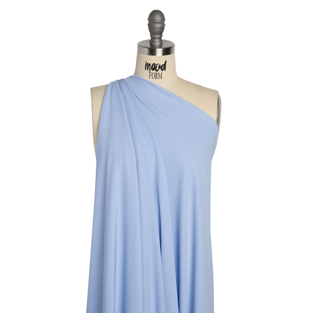 Mood's Rayon Matte Jersey - Baby Blue - Premium Collection has a beautiful drape and a "dry" hand that is the hallmark of fine matte jerseys. With just the right amount of stretch for a flattering fit, use this matte jersey to sew up slinky knit dresses, tops and skirts. Available in several attractive shades. Note: Dye lots are subject to change up to 10% in either direction. Ordering swatches is HIGHLY recommended for these products.