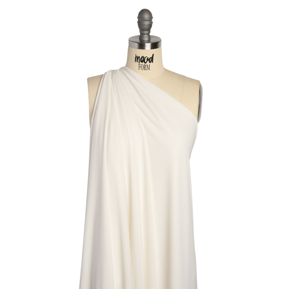 Mood's Rayon Matte Jersey - Off-White - Premium Collection has a beautiful drape and a "dry" hand that is the hallmark of fine matte jerseys. With just the right amount of stretch for a flattering fit, use this matte jersey to sew up slinky knit dresses, tops and skirts. Available in several attractive shades. Note: Dye lots are subject to change up to 10% in either direction. Ordering swatches is HIGHLY recommended for these products.