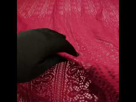 Catch the eye of all cameras on the red carpet in this Red Bug Floral Medallion Stripes Re-Embroidered Lace with Finished Edges—featuring a soft hand and fluid, flexible drape.Suggested Projects: Shirts, Skirts, Dresses, LingerieContent: 100% NylonStretch: Warpwise Mechanical GiveOpacity: SheerMedallion stripes stretch across this red re-embroidered lace, each filled with blooming flowers, leaves, and vines. A soft hand and fluid, flexible drape make it a dream for airy silhouettes and flowing eveningwear—with a fringed, finished edge making it easy to work with and effortlessly elegant. With its whimsical, garden-inspired motifs, envision it transformed into waterfall skirts, breezy blouses, bell-bottom pants, romantic lingerie, and more! Sheer by nature, a lining may be desired for added coverage and structure.Please Note: This is a panel that measures about 50/52” by 50”.