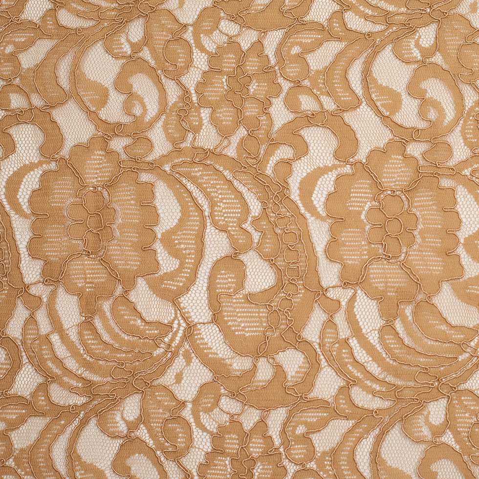 Re-Embroidered Lace with Scalloped Edge - Camel Floral