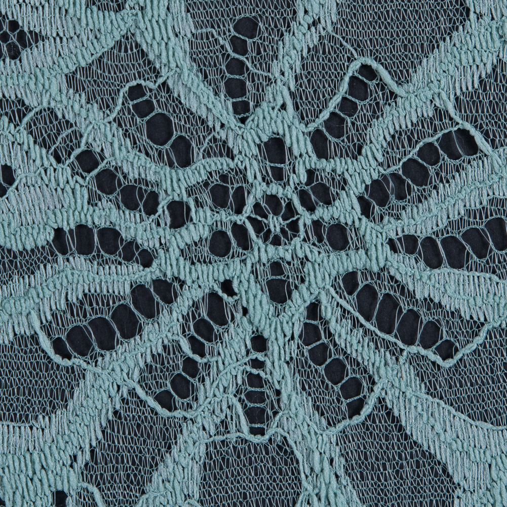 Re-Embroidered Lace with Scalloped Eyelash Edges - Sea Green Floral
