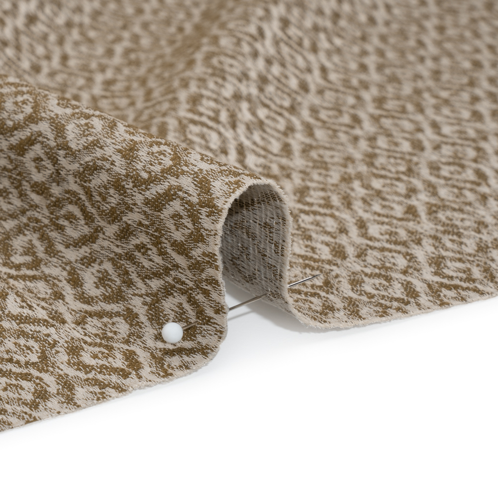 Recycled Polyester and Cotton Drapery Jacquard - Brass Diamond Ogees - British Imported