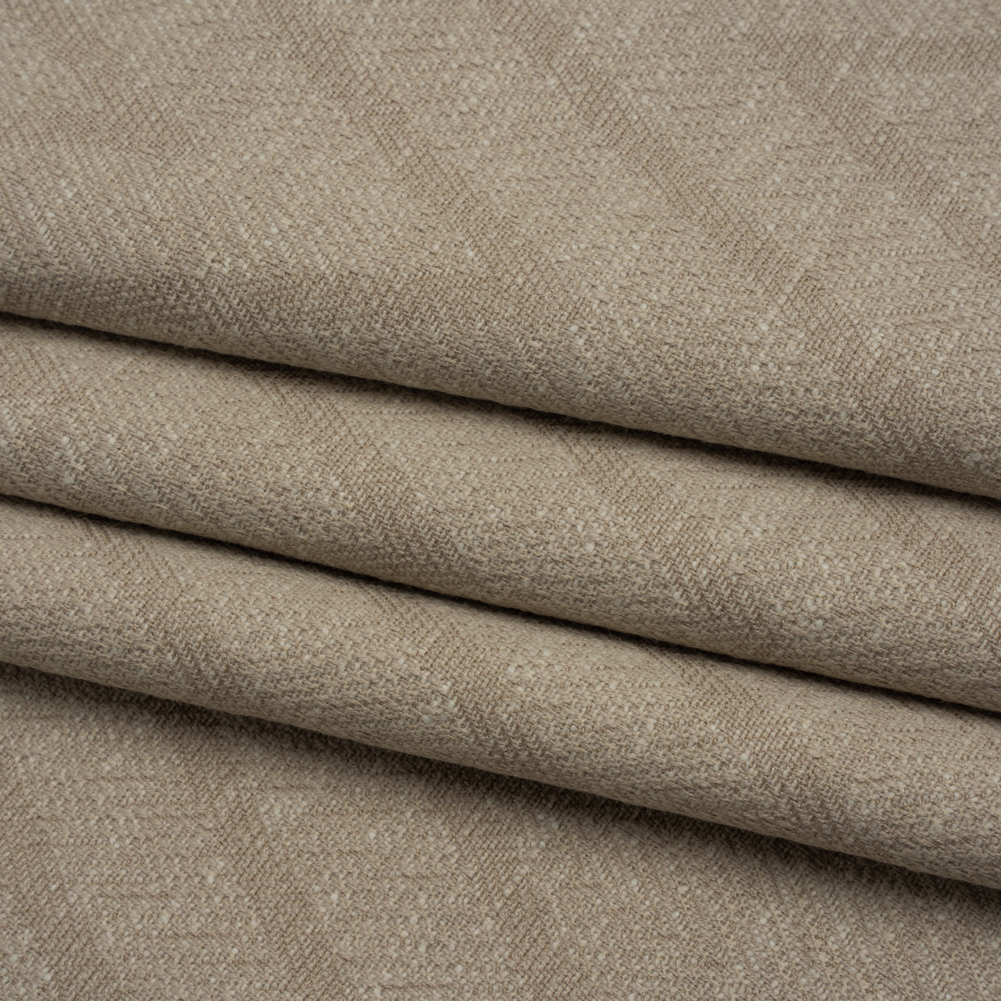 Shaped by nature’s hand, this Driftwood Chevron Recycled Polyester and Cotton Drapery Twill Woven is ready to grace your living space. With a soft, tactile hand and a supple drape, it brings effortless tranquility to your space.Suggested Projects: Curtains, Drapes, Valances, Throw PillowsContent: 50% Recycled Polyester, 20% Polyester, 30% CottonStretch: NoneOpacity: OpaqueThe driftwood brown chevron weave of this twill effortlessly merges laid-back charm with understated elegance. Its soft, tactile hand—enhanced by the twill weave—pairs beautifully with a supple drape, making it an ideal choice for floor-grazing curtains, flowing drapes, relaxed valances, and cozy throw pillows. While naturally opaque, adding a lining will lend a softer touch to window treatments while offering extra protection from the sun.