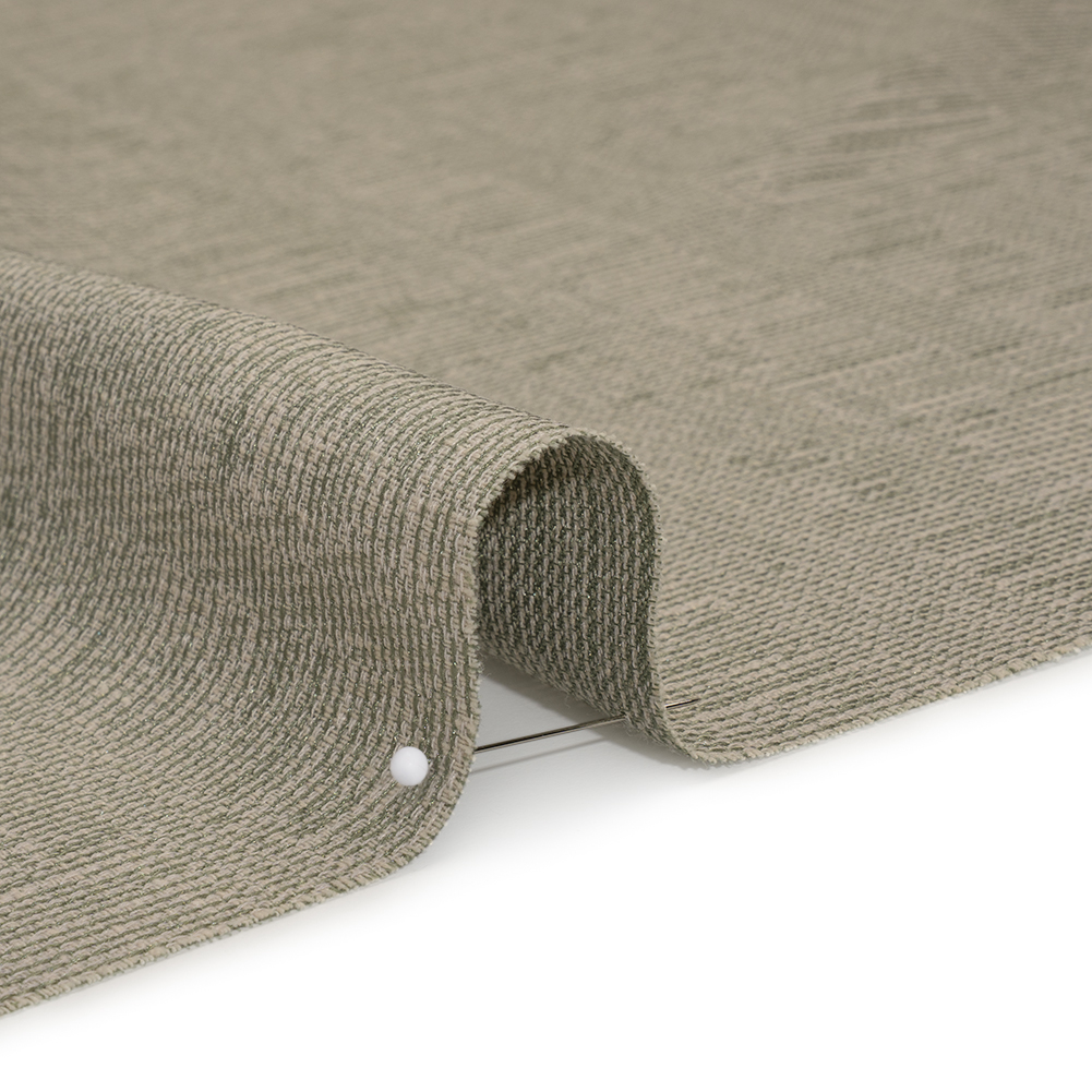 Relax beneath the shade provided by this Moss Striation Recycled Polyester and Cotton Drapery Woven. With a soft, slightly tactile hand and fluid, flexible drape, its easy, breezy nature makes going striate home after a long day easy.Suggested Projects: Drapes, Curtains, Valances, Light UpholsteryContent: 64% Recycled Polyester, 17% Polyester, 19% CottonStretch: NoneOpacity: Slightly TranslucentMoss green and pale greenish-beige threads intertwine in a striated design, evoking the textured beauty of tree bark and the serene essence of temperate hiking trails. The fabric is luxuriously soft, with a pliable, fluid drape that effortlessly enhances any space. Whether used for elegant drapes, airy valances, or light upholstery like throw pillows, couch cushions, and headboards, this woven piece brings a touch of nature indoors. Slightly translucent, it offers a soft play of light, though a lining can be added to boost opacity when desired.