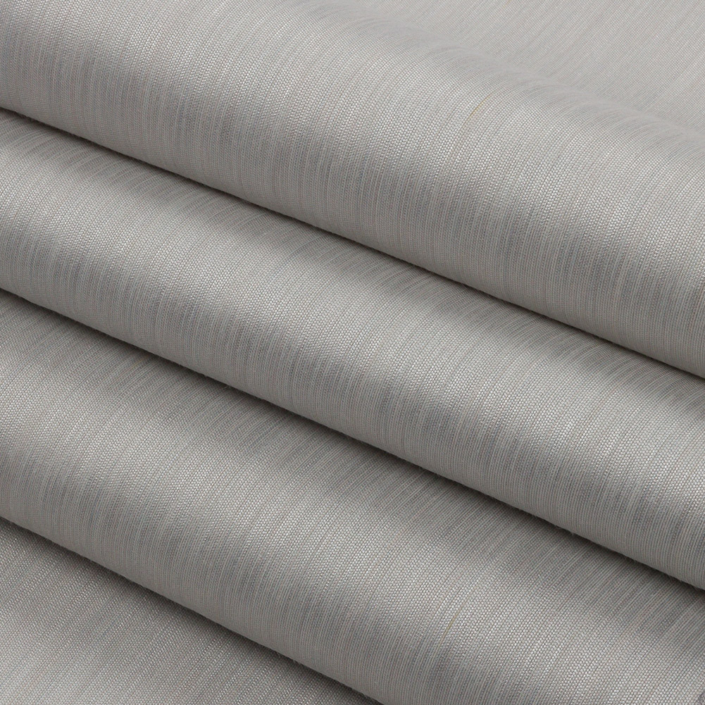 Modern home decor is right around the corner thanks to this British Imported Dove Striated Recycled Polyester Bengaline. Silver and gray threads are tightly woven together to produce a slightly textured hand, a modest sheen, and a subtly striated face. This coloring beautifully complements black, blue, or white fabrics. With a flexible drape and no stretch, create dramatic drapes, long, pooling curtains, elegant swags, or even light upholstery projects like throw pillows and seat covers. Slightly translucent, a lining can be added to lessen sun damage, but it's not needed for most projects.