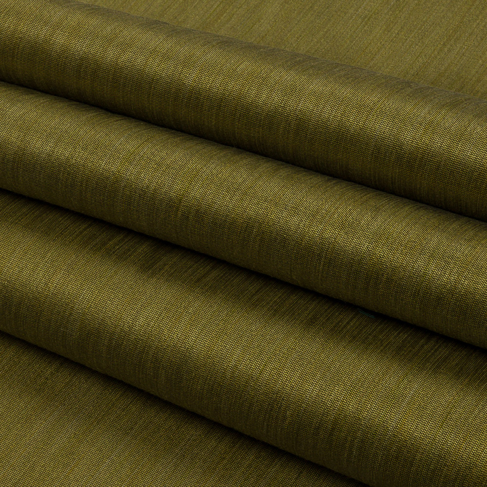 Feel the energy radiating off of this British Imported Zest Striated Recycled Polyester Bengaline. A weave of green and black threads produces a subtle pebble-like texture and a face of slightly alternating hues. Paired with a luster and an easy drape, this elegant fabric would create dramatic drapes, long, pooling curtains, luxurious swags, or even light upholstery projects like throw pillows and seat covers. Slightly translucent, a lining can be added to lessen sun damage, but it's not needed for most projects.