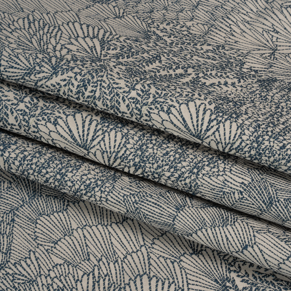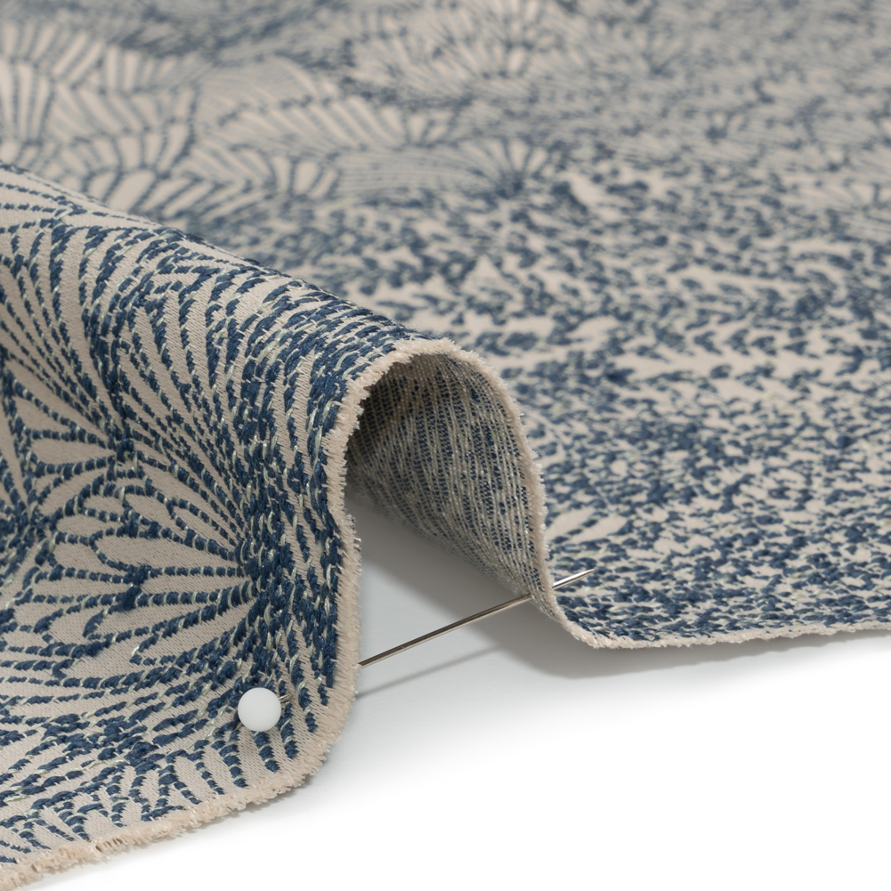 Recycled Polyester Jacquard – Indigo Lush Garden – British Imported