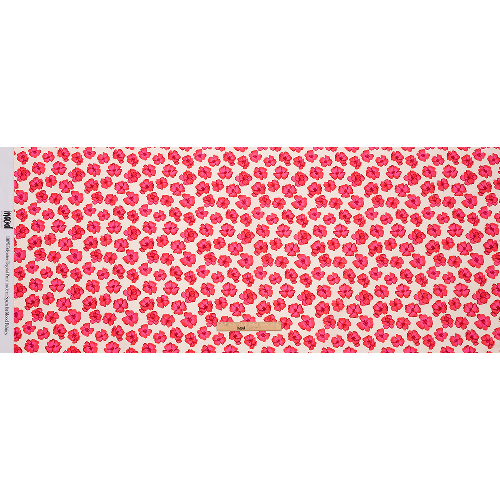 Recycled Polyester Swim Trunk Fabric - White and Pink Floral - Hawaiian Rollercoaster Print - Mood Exclusive Malibu Collection