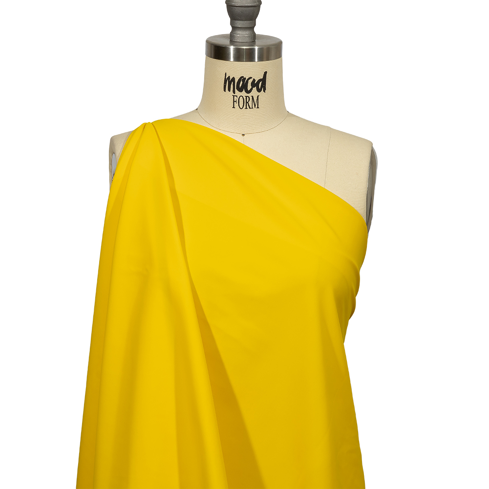 Be the best bathing beauty around with this Santorini Plus Canary UV Protective Stretch Recycled Swimwear Tricot! Seen here in bright yellow, this tricot is definitely more than meets the eye. In addition to the 25% all-way stretch, bouncy drape, and smooth, cool feel, it contains several properties that make it the ideal fabric for swimwear, including one-pieces, bikinis, and both statement and performance swimsuits. Discover these fabulous properties for yourself:Chlorine Resistance: Keep your swimsuit looking and feeling fresh for years to come, thanks to the chlorine resistance which helps to maintain colorfastness, elasticity, and fabric integrity.UV Protection: Protect yourself against harmful UV rays with a UPF of 50+.The Santorini Collection comes in two different grounds—Plus and Light—with more than 40 colorways each! This product is from the Santorini Plus Collection, which features a slightly heavier weight and is made with Stretch Recycled nylon.MoodEarth Verified: This eco-friendly material is OEKO-TEX certified; tested independently and worldwide, the certification system evaluates finished, semi-finished, and raw textiles while thoroughly covering chemicals, harmful substances, and precautionary parameters. This fabric is also made with Stretch Recycled materials, which are made from post-consumer waste that is transformed into raw fibers, producing a high-quality, eco-friendly fabric. For more information on Mood's sustainability initiatives, check out MoodEarth here. WARNING: Cancer and Reproductive Harm - www.P65Warnings.ca.gov.