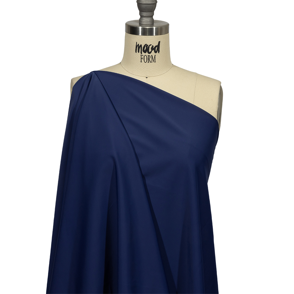 Be the baddest beach in town with this Santorini Plus Harmony Blu UV Protective Stretch Recycled Swimwear Tricot! Seen here in navy blue, this tricot is definitely more than meets the eye. In addition to the 25% all-way stretch, bouncy drape, and smooth, cool feel, it contains several properties that make it the ideal fabric for swimwear, including one-pieces, bikinis, and both statement and performance swimsuits. Discover these fabulous properties for yourself:Chlorine Resistance: Keep your swimsuit looking and feeling fresh for years to come, thanks to the chlorine resistance which helps to maintain colorfastness, elasticity, and fabric integrity.UV Protection: Protect yourself against harmful UV rays with a UPF of 50+.The Santorini Collection comes in two different grounds—Plus and Light—with more than 40 colorways each! This product is from the Santorini Plus Collection, which features a slightly heavier weight and is made with Stretch Recycled nylon.MoodEarth Verified: This eco-friendly material is OEKO-TEX certified; tested independently and worldwide, the certification system evaluates finished, semi-finished, and raw textiles while thoroughly covering chemicals, harmful substances, and precautionary parameters. This fabric is also made with Stretch Recycled materials, which are made from post-consumer waste that is transformed into raw fibers, producing a high-quality, eco-friendly fabric. For more information on Mood's sustainability initiatives, check out MoodEarth here. WARNING: Cancer and Reproductive Harm - www.P65Warnings.ca.gov.
